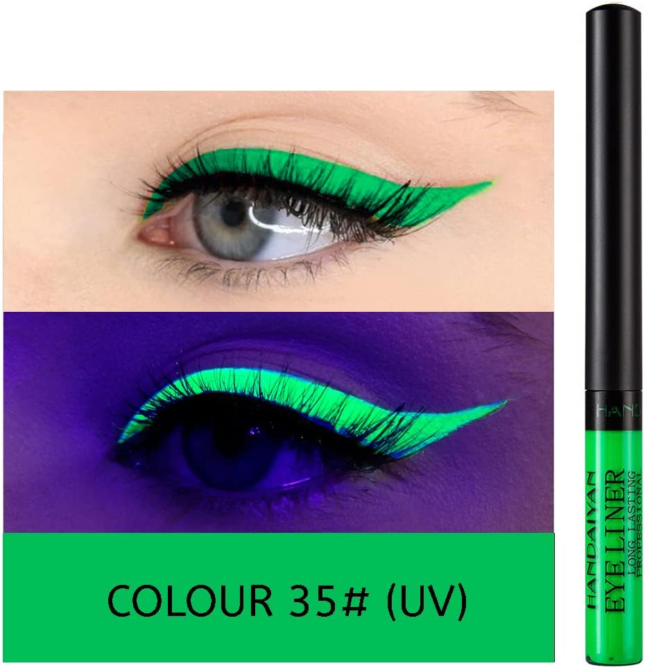 12 colors rainbow colorful liquid eyeliners are ideal for party, cosmetic show, daily makeup, Unlike the most eyeliners, this eyeliners also glow under UV. You could create colorfully vibrant and fun looks from day to night.