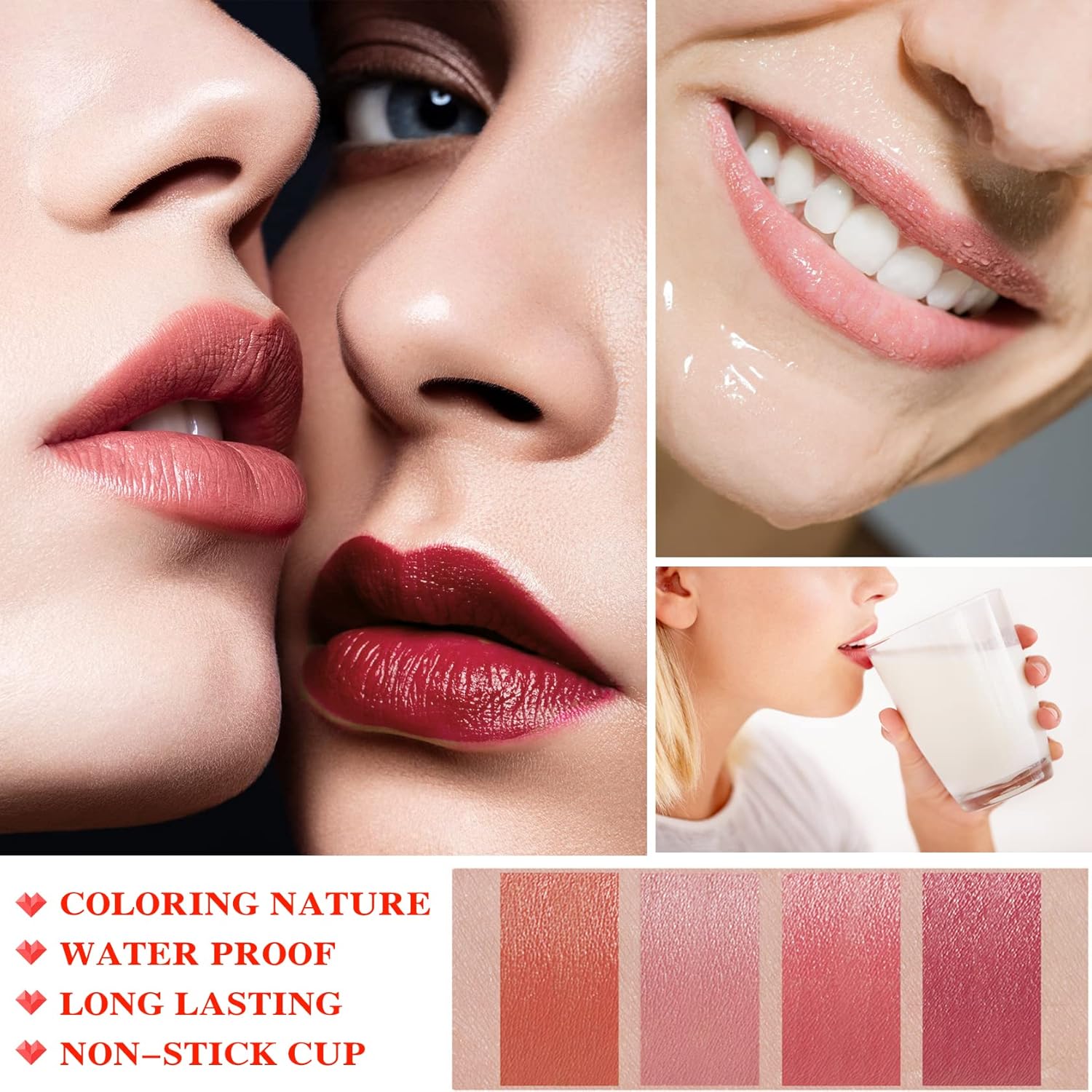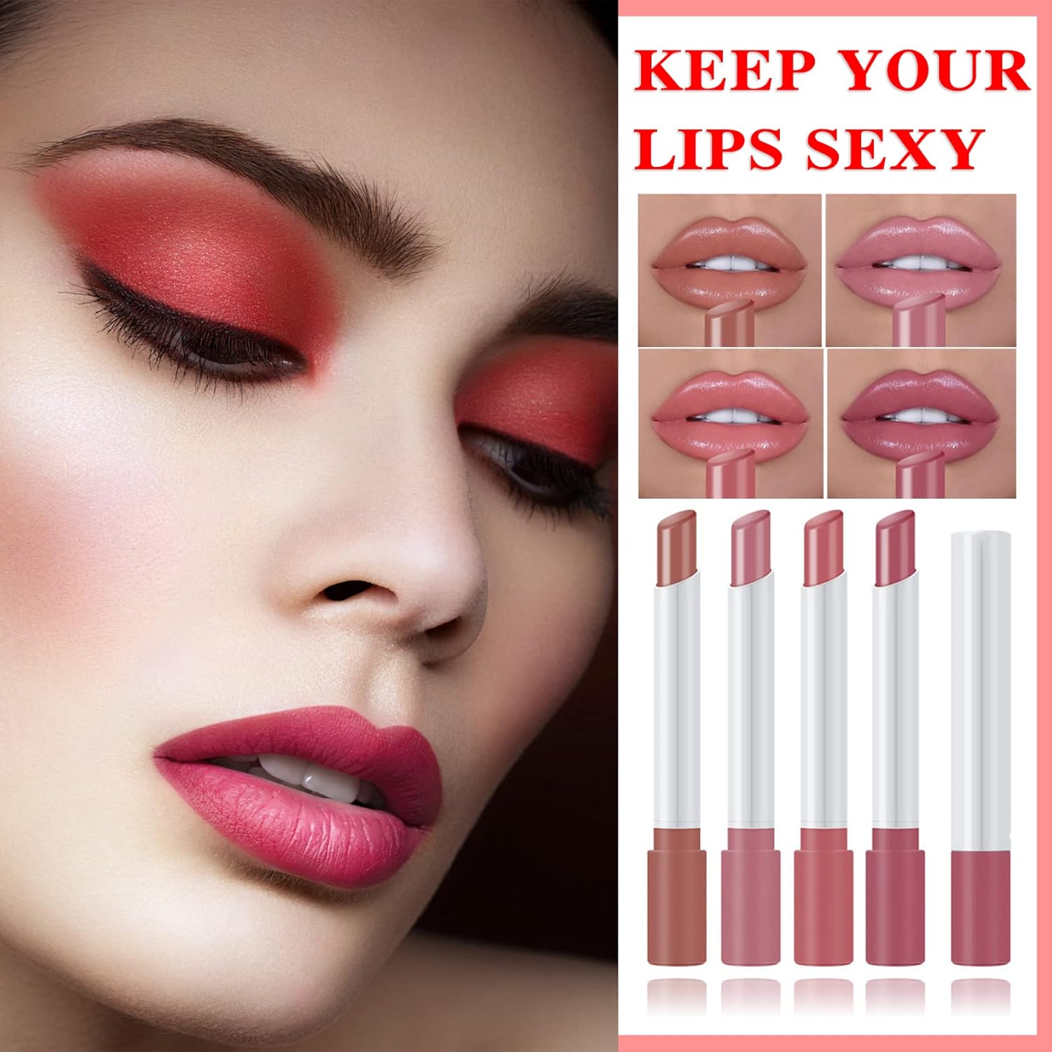 4 Pack Little Small Smoke Tube Cigarettes Lipstick, Color Changing Lip Gloss Lipstick,Nude Matte Lipstick Set,Red Long Lasting 24 Hours Waterproof Ladies Lip Balm Lipstick(Set A)