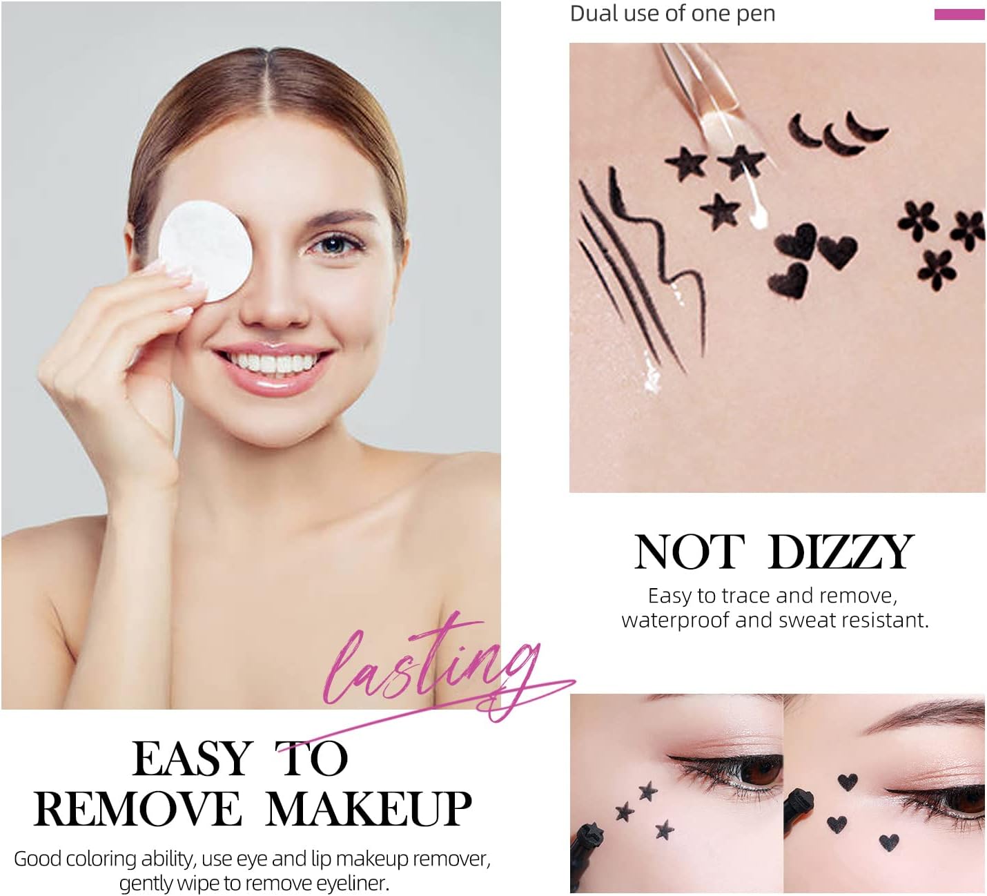 4 Styles Double-headed Liquid Eyeliner Pen Stamp Super Slim Gel Felt Tip High Pigment Black Waterproof Long Lasting Smudgeproof (A Star)