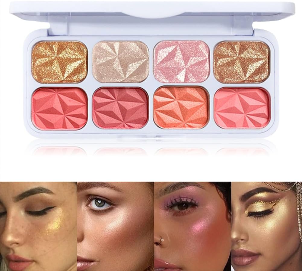 8 Colors Blusher Highlighter Makeup Palette, Waterproof Natural Matte blush Waterproof Shimmer Highlight Bronzer Pink Eyeshadow Make up for Cheeks. (Highlighter & Blusher)