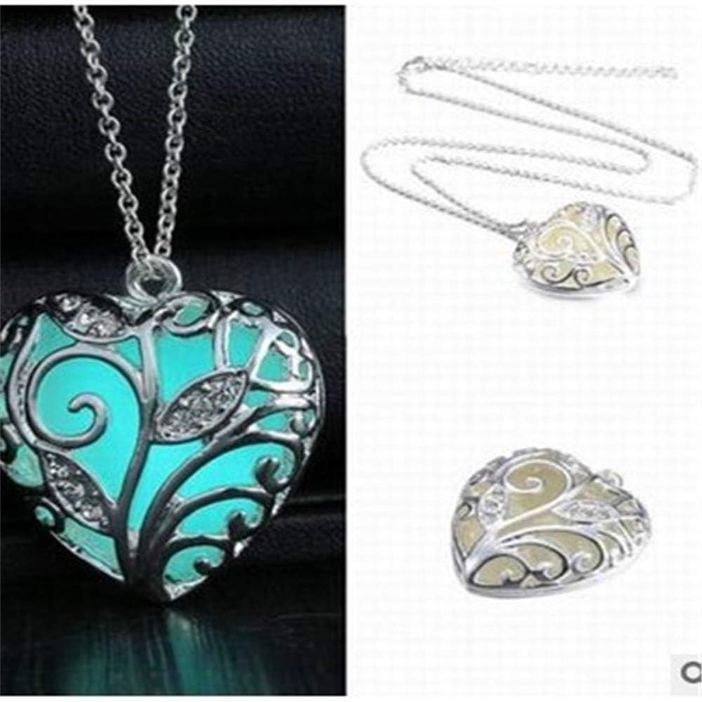 Aimimier Luminous Heart Necklace Halloween Fluorescent Stone Necklace Glow in The Dark Accessories for Women Teens Girls, Metal