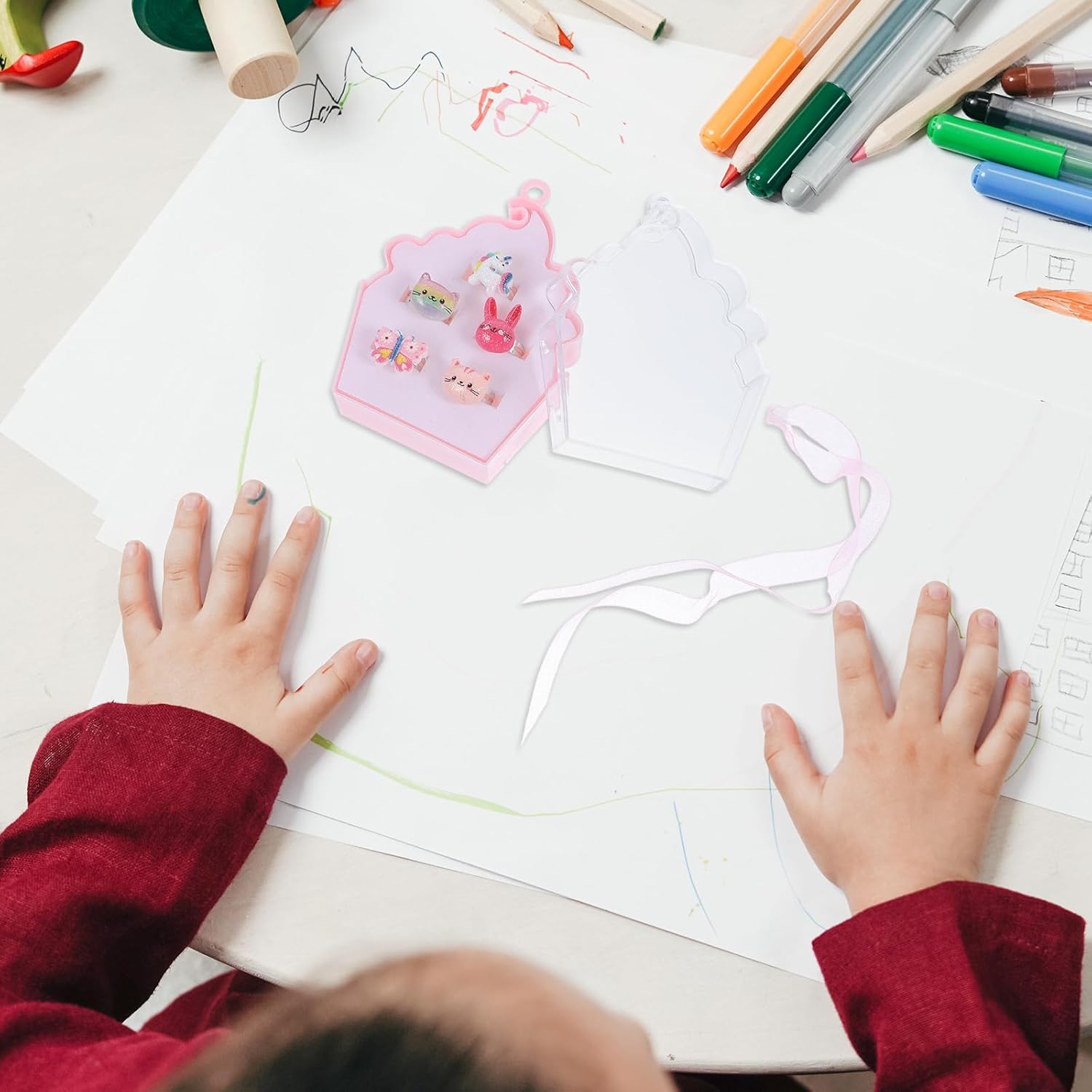Alasum Toddler Rings 1 Box Children’s Cartoon Ring Little Girl Toddler Play Jewelry Adjustable Girl Child Decorate