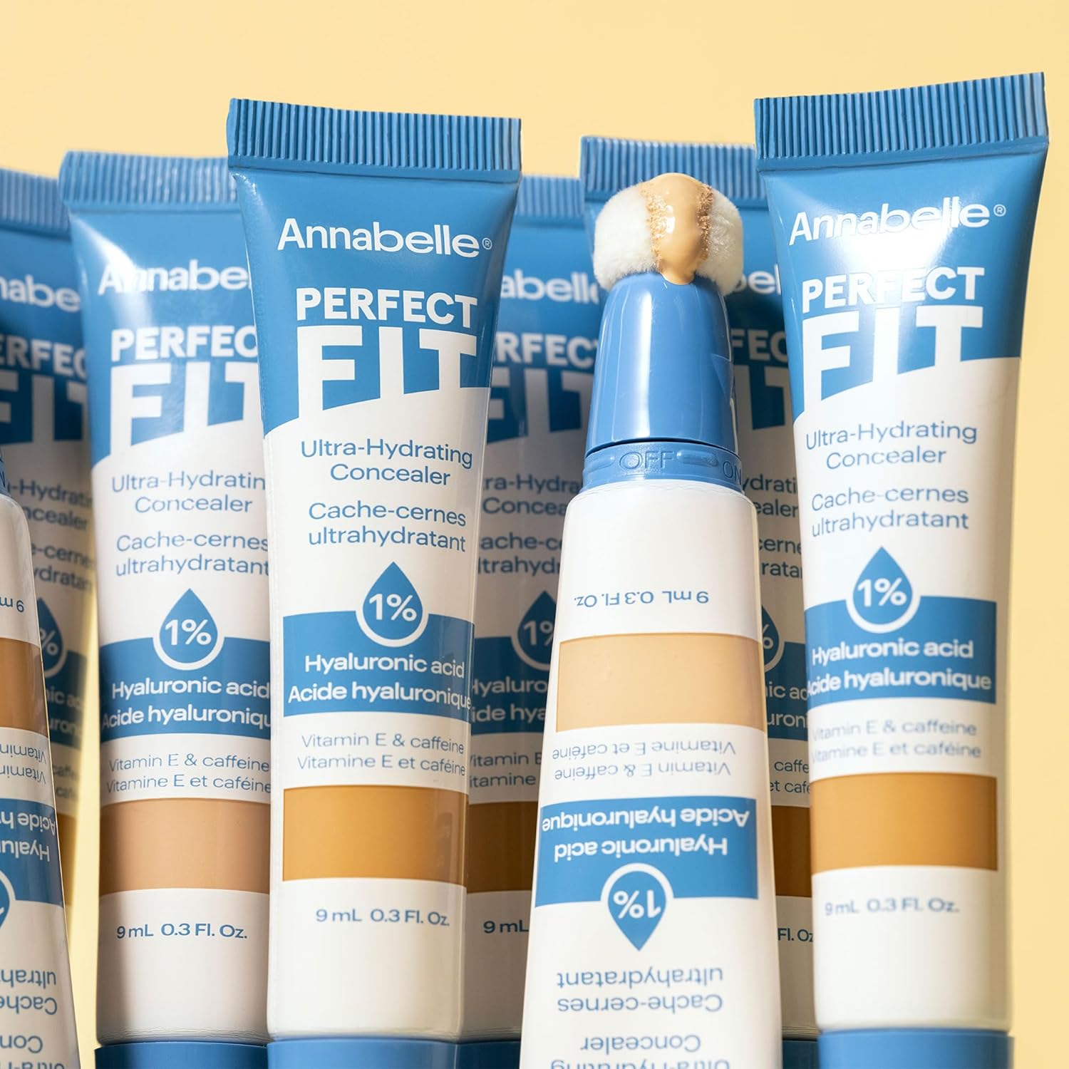 Annabelle Perfect Fit Ultra-Hydrating Concealer, Fair, with Hyaluronic Acid, Waterproof, Long-Lasting, Cruelty-Free, Vegan, Oil-Free, Paraben-Free, Fragrance-Free, Non-Comedogenic, 9 mL