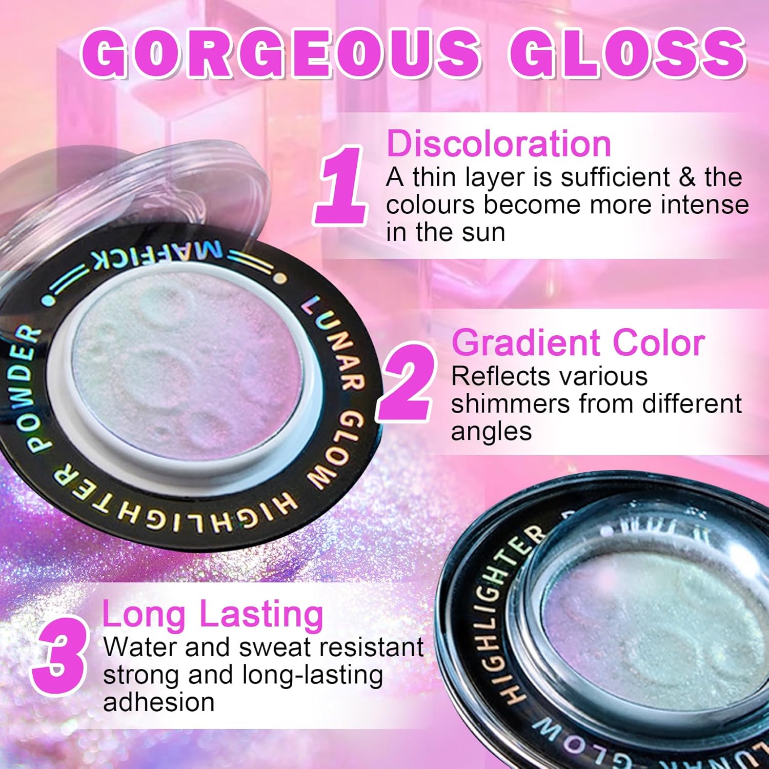 Long-lasting Glitter: Highlighter palette has a soft and silky texture,easy to apply;it has a good waterproof effect and provides a long-lasting glitter effect,you can maintain a high-gloss makeup all day long in the hot summer