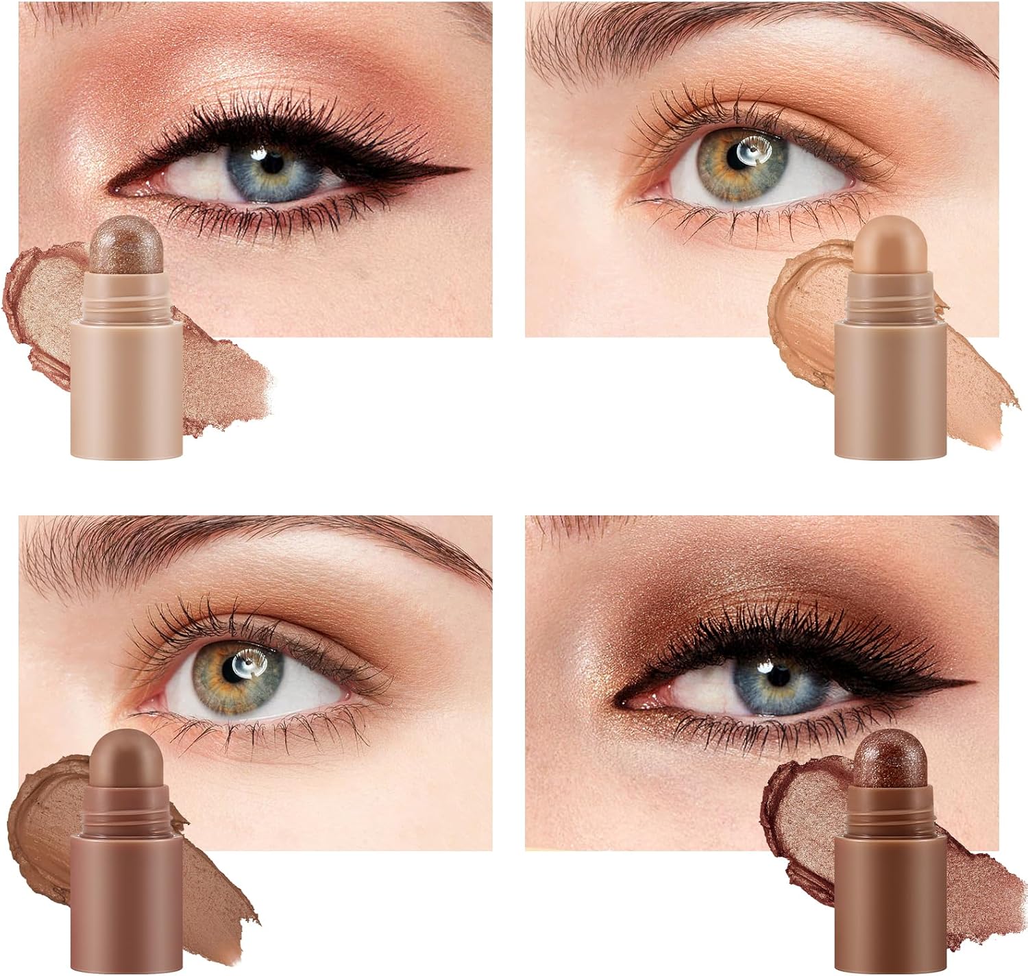 4 Colors Eyeshadow Stick: 4 in 1 eyeshdow pen to create a full face look, two mattes and two shimmer can be used individually or mixed, perfect for applying makeup according to your creativity.