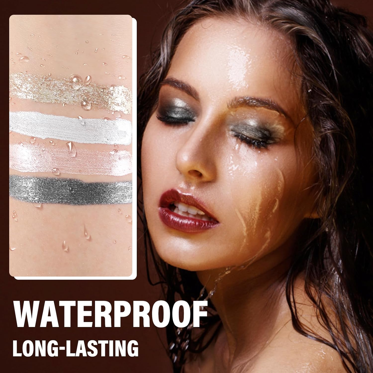 Apooliy Liquid Glitter Eyeshadow Waterproof Shimmer Eye Shadow,Quick-Drying,Long-Lasting,Creates High-Impact,Highlighter