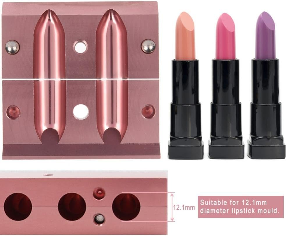 LIPSTICK MOULD STRIPPER: DIY Lipstick Tool is made of high-grade quality aluminum alloy, which is safe, environmental and durable for long term use. Lipstick maker mold is suitable for 12.1mm diameter lipstick mould. diy cosmetic lipstick mold is used for lipstick mould