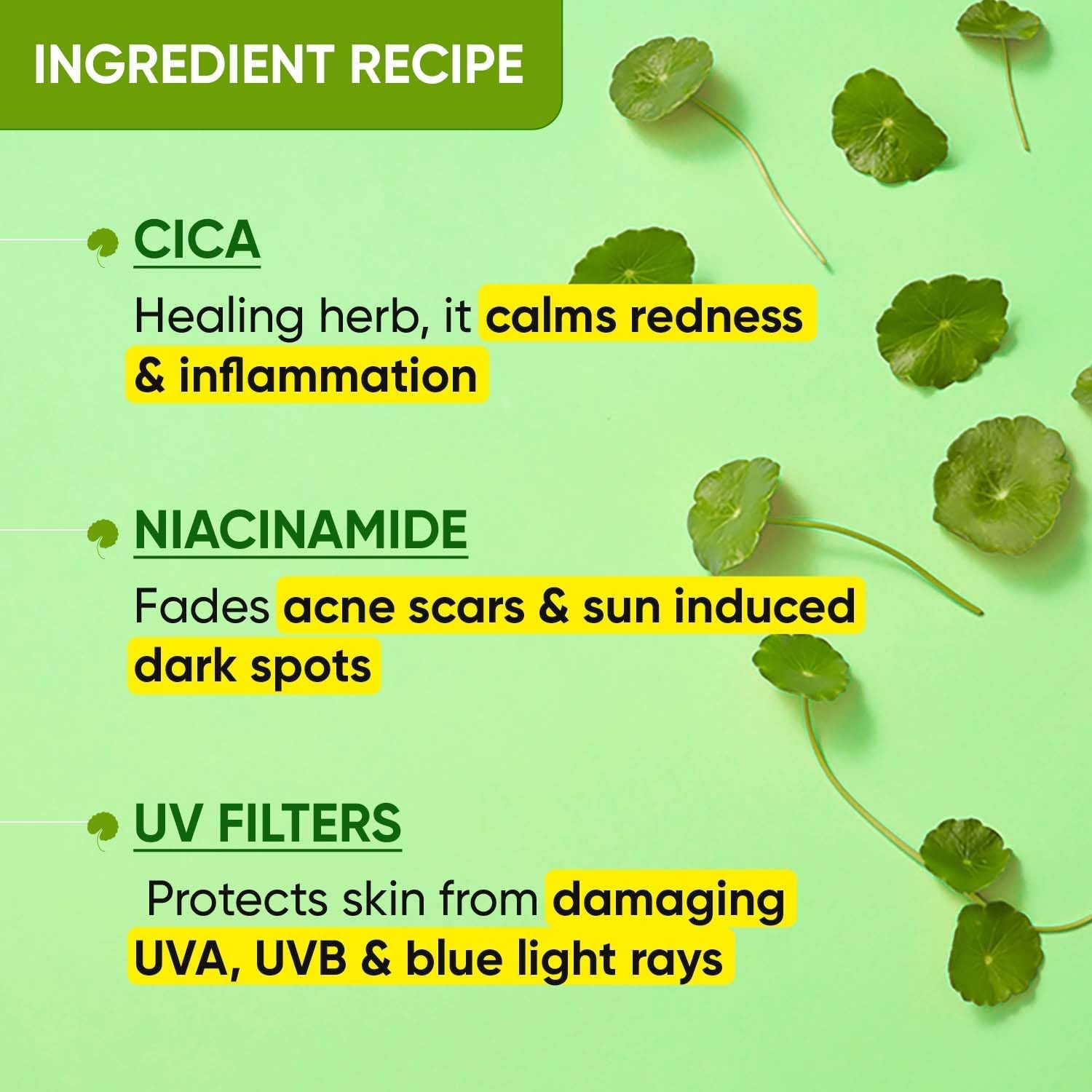 CALMING INGREDIENTS: Contains CICA (Centella Asiatica) to help soothe and calm sensitive or irritated skin while protecting it