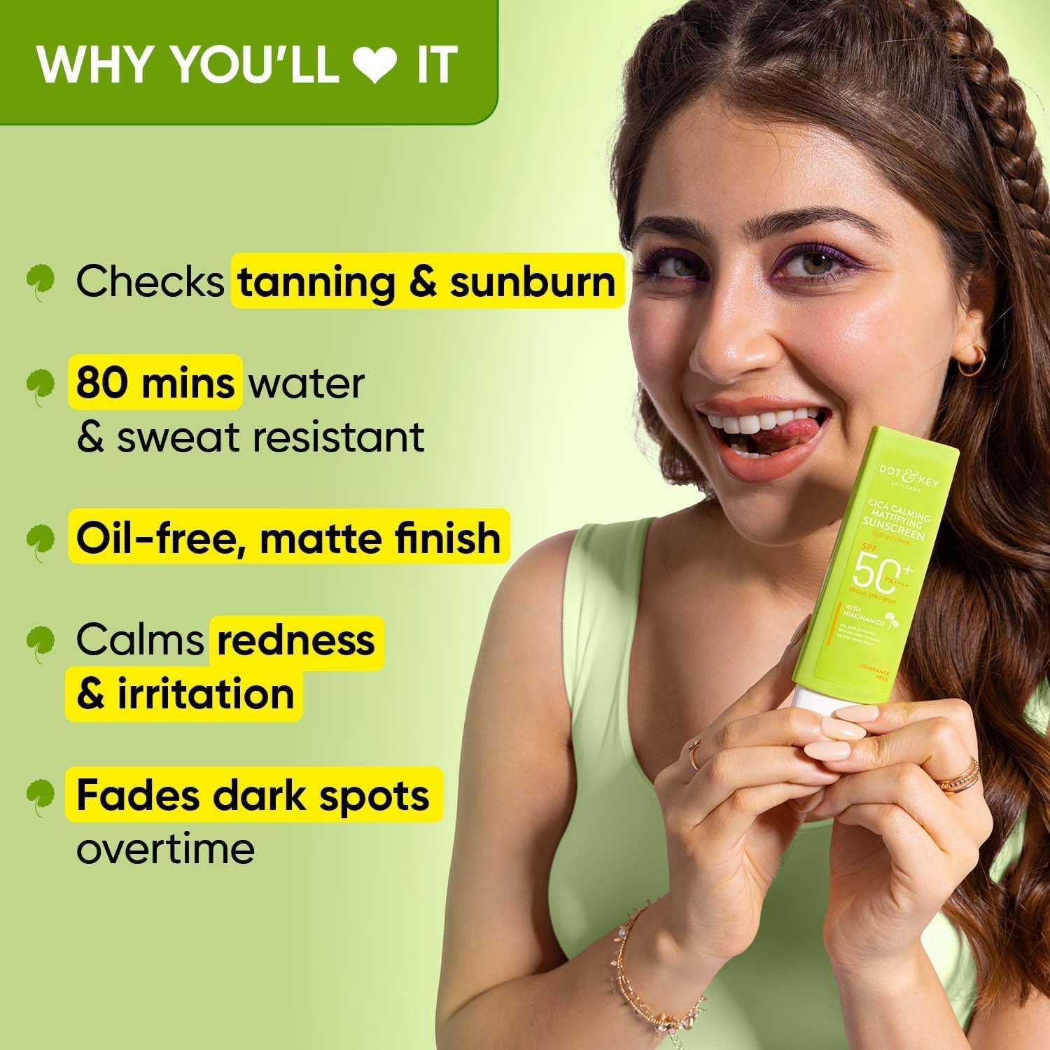 Dot and Key CICA Calming Sunscreen, SPF 50 PA++++, 50g, For Oily and Sensitive Skin, No White Cast