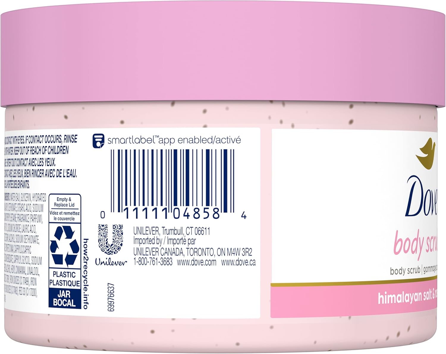 Gently exfoliate dry, dull skin while nourishing and restoring skin’s natural nutrients with Dove Himalayan Salt & Rose Oil Body Scrub. Made with ¼ moisturizing cream and naturally derived cleansers, it will leave your skin feeling silky smooth. With a whipped, easily spreadable texture, this Dove body exfoliator gives you beautifully creamy coverage while releasing a gentle floral fragrance made with sweet and fresh roses, evoking a sense of serenity. Get all the effectiveness you’d look for in exfoliators or a shower scrub, but with the nourishment and care that your skin needs in the shower. To use, scoop a generous amount out of the jar. Massage exfoliating body scrub all over your body in circular motions, and then rinse away to reveal silky smooth skin. Use 3–4 times per week as part of your skin care regimen, followed by Dove Body Wash or Beauty Bar. Try Dove Body Polish to get beach-ready skin, prep skin for tanning, or to help exfoliate before shaving to help prevent ingrown hairs. Plus, when you buy Dove, you can be assured you’re caring for your skin with products that are PETA approved. Company-wide, we’re also on a mission to help the next generation of women develop a positive relationship with the way they look — reaching over ¼ of a billion young people with self-esteem education by 2030. We’re also committed to substantially reducing plastic waste by 2025. This includes reducing our use of virgin plastic by 20,500 metric tons annually, launching new 100% recycled plastic bottles and trialing new refillable formats for certain select products.