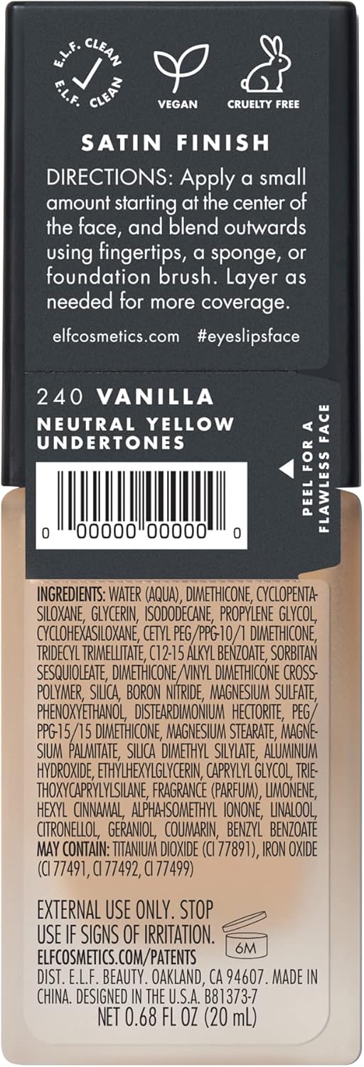 e.l.f. Flawless Finish Foundation, Lightweight & Medium Coverage, Semi-Matte Finish, Vanilla, 0.68 Fl Oz (20mL)