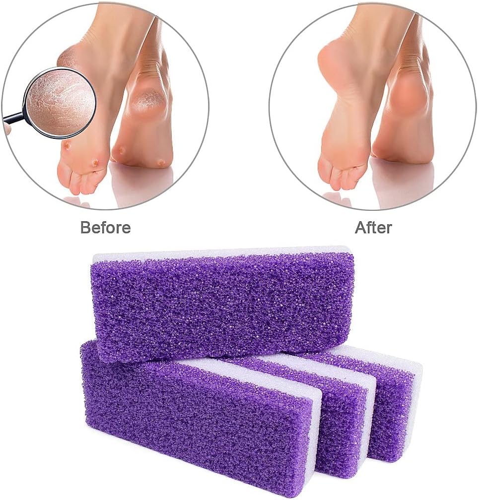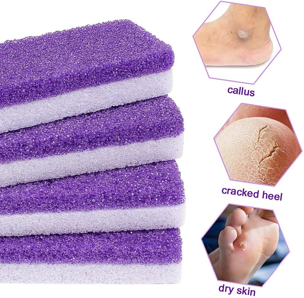 4 PACKS SET:Package includes 4 packs purple double sided foot pumice stones,ideal pedicure tools set,enough for your daily foot caring.