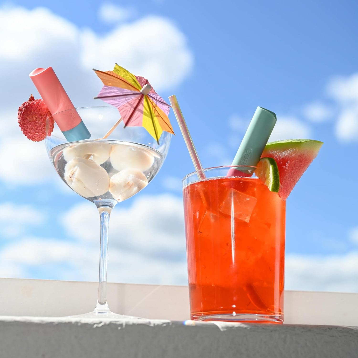 Discover a lip balm that’s 100% natural and delicious. Fresh-off-the-vine watermelon, kaffir lime, and a cool rush of icy frosé creates our Watermelon Frosé Lip Balm while sweet + tangy lychees, the tartness of late-summer raspberries, and a splash of passionfruit nectar creates our Lychee Martini Lip Balm. eos 100% Natural, dermatologist-recommended lip balm is formulated for sensitive skin and made with soothing shea butter, weightless coconut oil, and protective antioxidants. eos lip balms use sustainably sourced ingredients that provide all-day moisture and are sure to leave your lips feeling buttery smooth, hydrated, and with a delicious taste all day long.