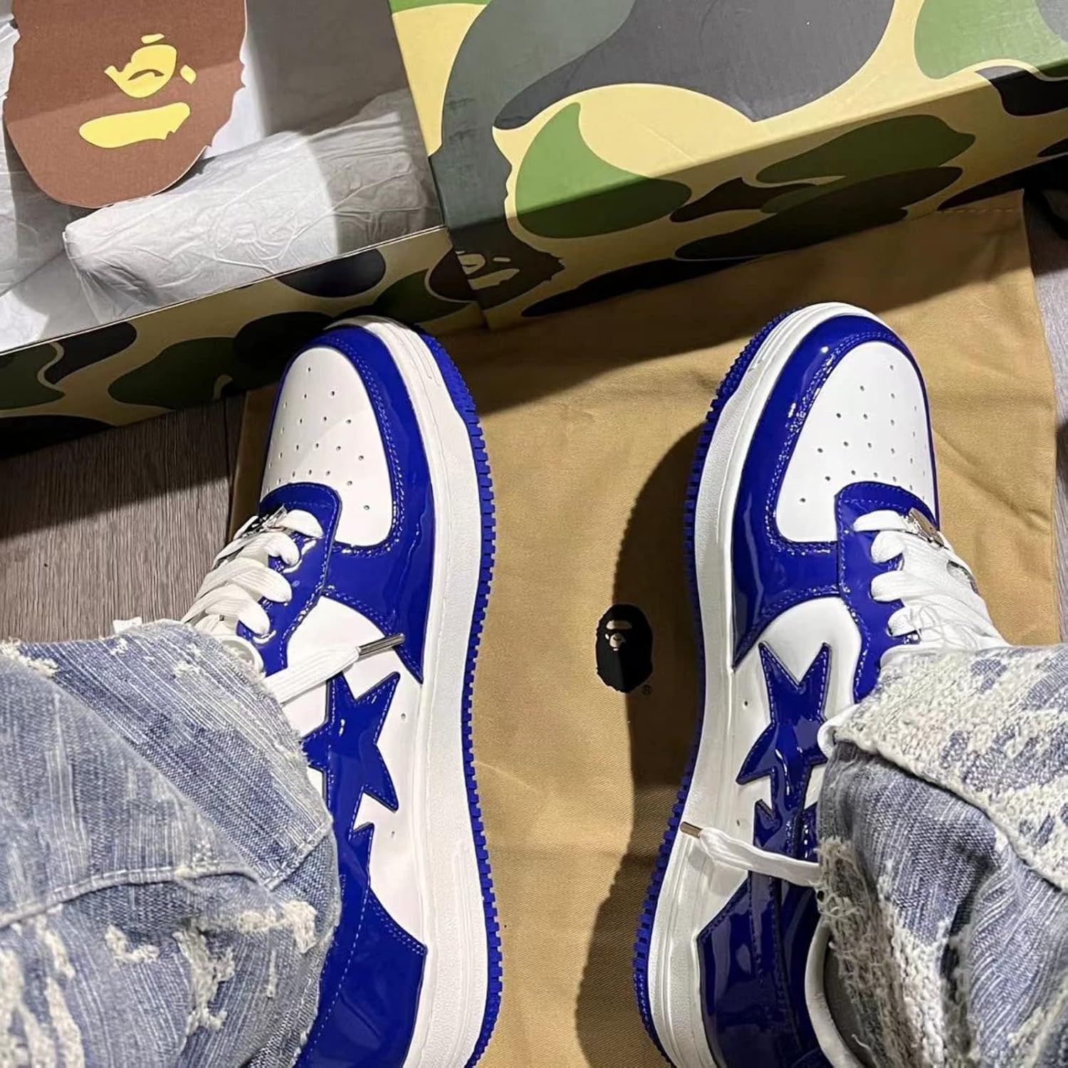 Ervkgm Sneakers for Women Men Classic Ape Head Logo Lightning Star Graphic Leather Trend Sports Shoes Low Top Skateboard Shoe