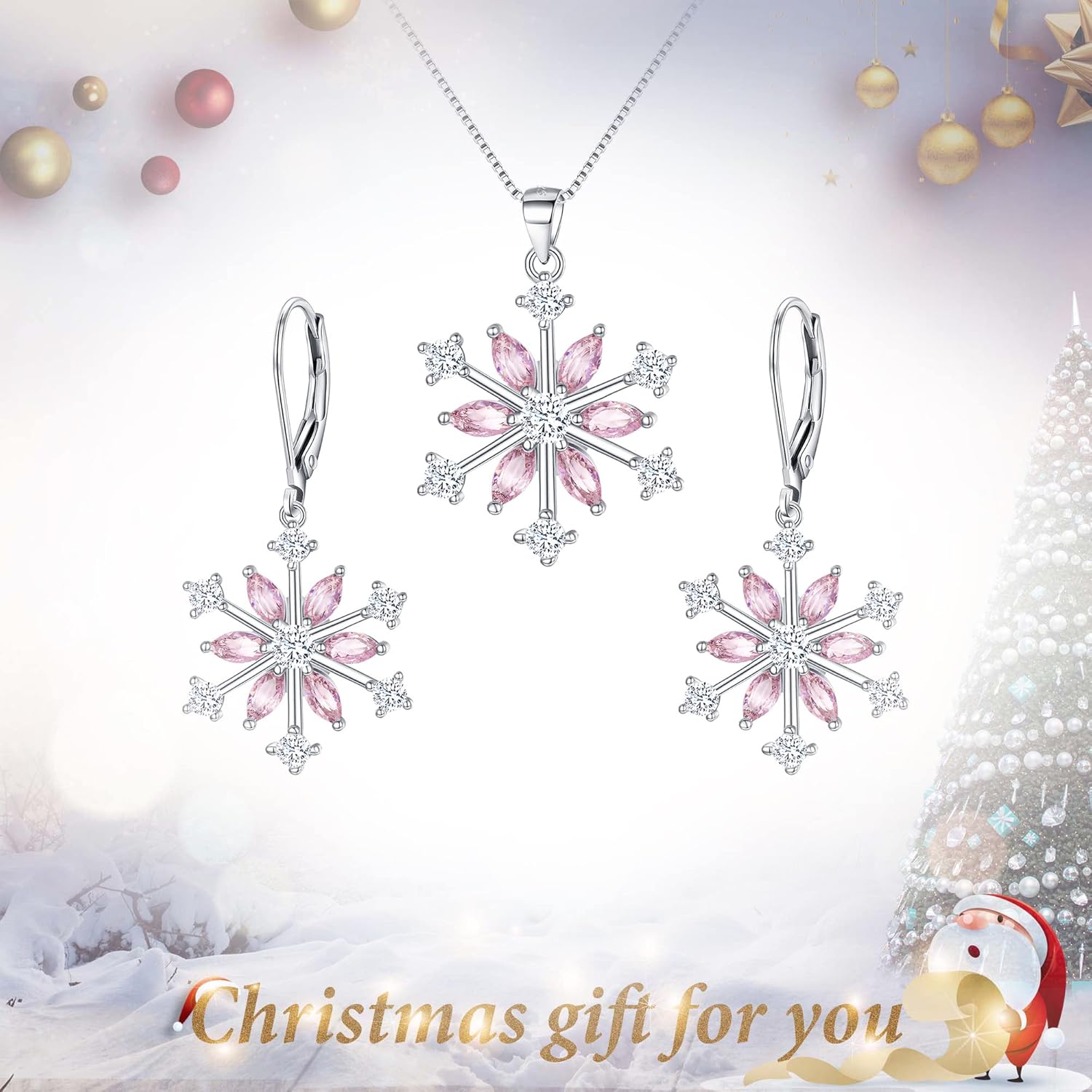 EVER FAITH Snowflake Jewerly Sets Sterling Silver Accessory Sparkle Zircon Flower Necklace Leverback Earrings Set for Women