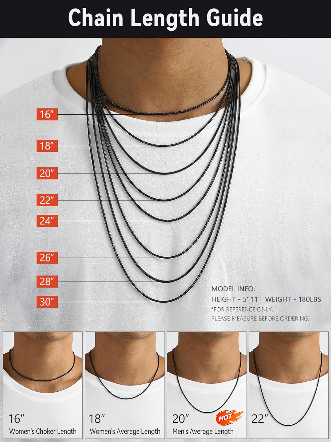 FaithHeart Stainless Steel/18K Gold Plated Snake Chain Necklace for Women Men (Silver/Gold/Black)