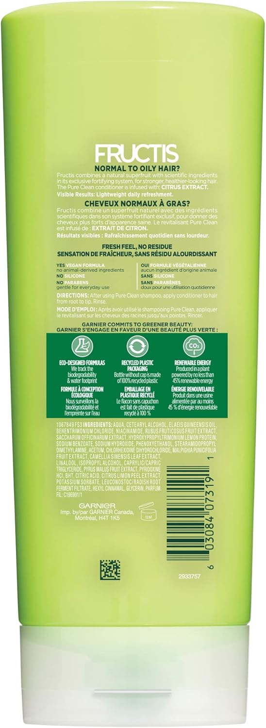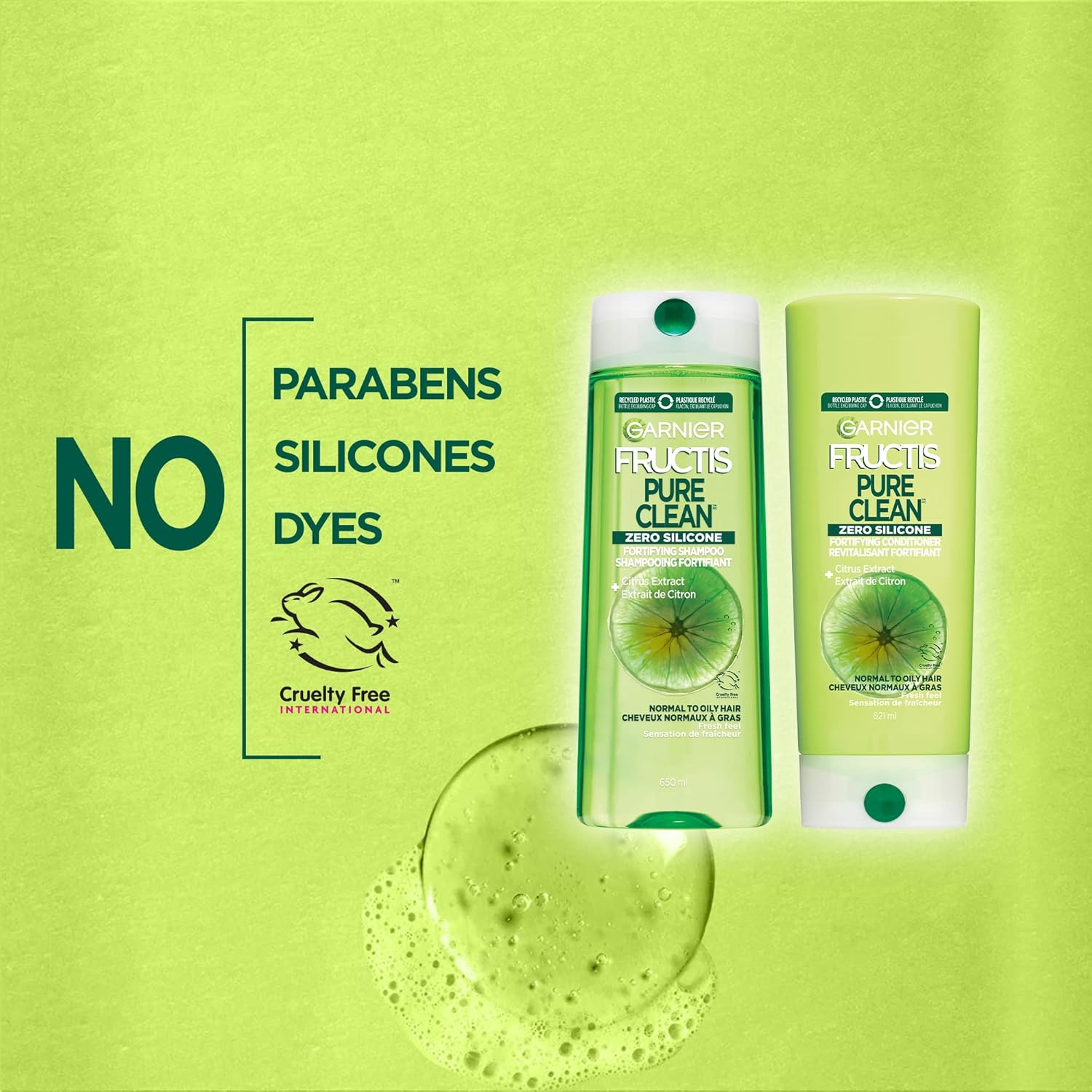 Garnier Fructis Pure Clean Zero Silicone Fortifying Conditioner for Normal to Oily Hair, with Citrus Extract, 621mL