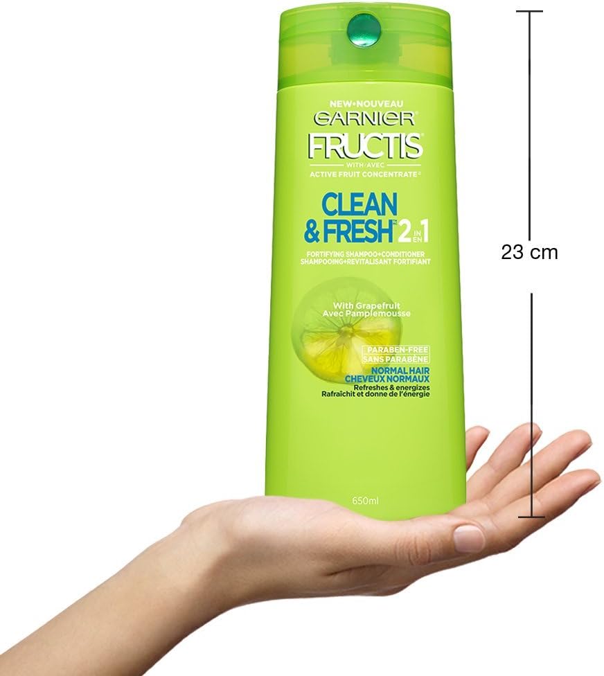 Paraben-free Fructis Daily Care 2-in-1 Shampoo & Conditioner with Grapefruit refreshes and energizes hair for stronger-looking hair with touchable softness. Gentle enough for everyday use.