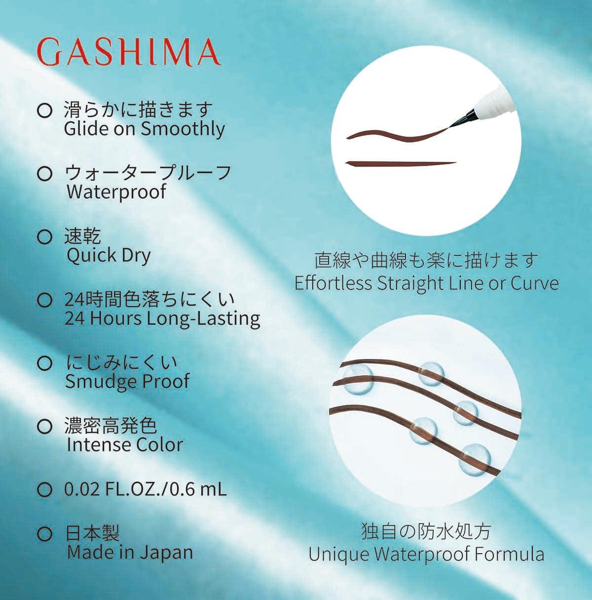 GASHIMA Liquid Eyeliner, Dark Brown, Unique Waterproof Formula, Quick Dry, 24 Hours Long-Lasting, Smudge Free, 0.1mm Easy-to-Draw Brush Tip, Ultra Fine Line, Made in Japan