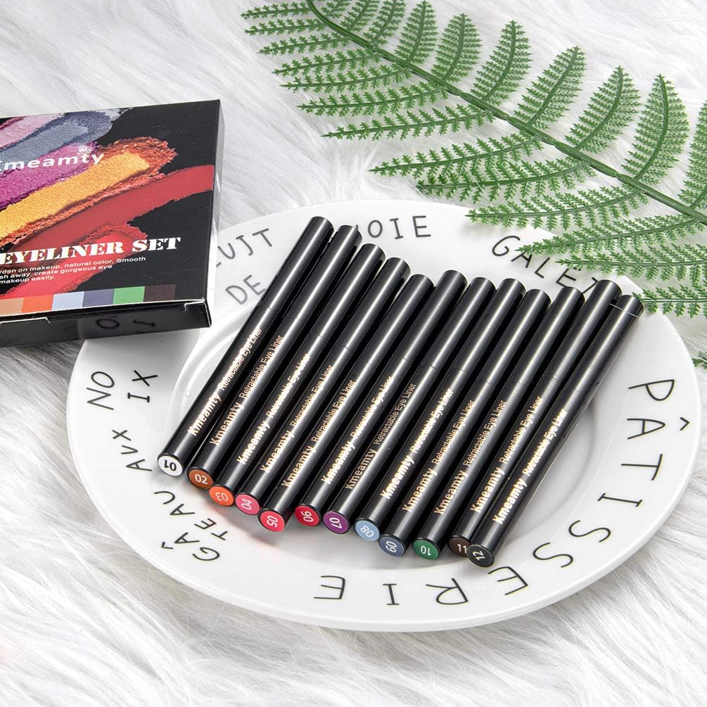 Gel Eye Liner Pencil Set, Kmeamty 12 Colors Retractable Long-Lasting Smooth Waterline Eye Liner Lip Liner Eyeshadow – Vegan, Cruelty Free