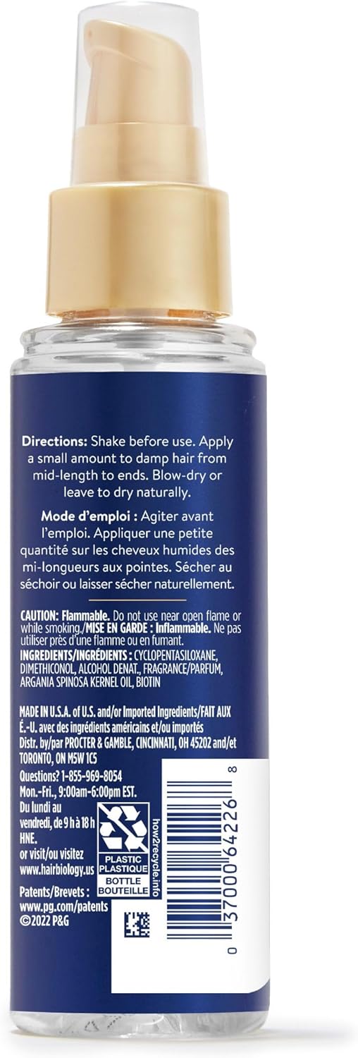 Hair Biology Argan Oil Taming Serum with Biotin for Dull, Frizzy or Dry Hair, 95 mL
