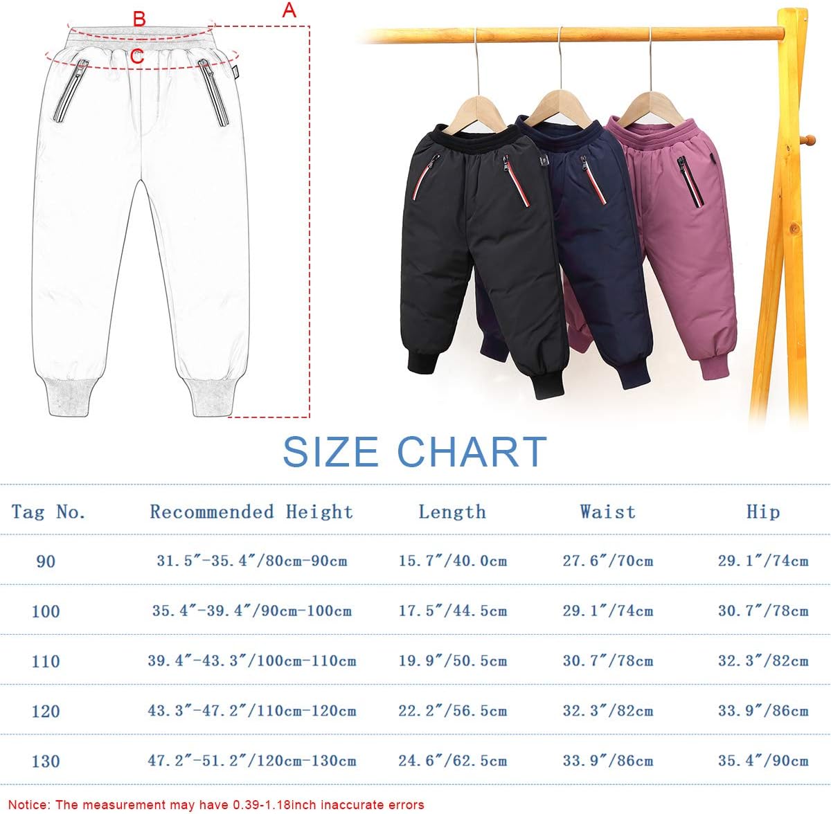 Happy Cherry Kids Down Pants Baby Boys Girls Windproof Warm Snow Pants Winter Thicker Elastic Waist Trousers