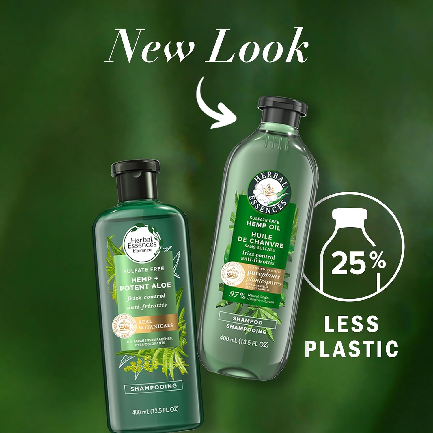 Looking for shampoo for your hair that’s deeply nourishing yet surprisingly lightweight? Herbal Essences Sulfate Free Hemp Oil Curl Frizz Control Shampoo is formulated to help reduce frizz and give you lusciously soft hair—with a weightless feel. It contains: • Hemp oil • Pure aloe vera • Lightweight camellia oil • NO sulfates, parabens, dyes, or phthalates • 96% natural origin ingredients* Meet camellia oil. Unlike other commonly used ingredients that can make hair feel heavy, camellia oil is amazingly lightweight. It mimics the natural oils found in healthy hair—the oils that our hair tends to lose when washed. That makes camellia oil one of nature’s most effective yet lightweight nourishers. You’ll feel the difference as it instantly soaks in, leaving you with weightlessly soft hair. With the scents of fresh florals, tropical fruits, and vanilla, Herbal Essences Hemp Oil Frizz Control Shampoo is made for all hair types, especially frizzy hair. The plant ingredients inside are certified by the world’s leading experts at Royal Botanic Gardens, Kew. And of course, it’s Certified PETA Cruelty-Free. How to Use: 1. Apply generously to wet hair 2. Lather and rinse 3. For best results, follow with the matching Herbal Essences Sulfate Free Hemp Oil Frizz Control Conditioner Our NEW plant-inspired bottles are: • Our 400 mL bottles are made with 25% less plastic (*vs. Herbal Essences Smooth Rose Hips 400 mL, g/mL) • 100% recyclable The raised dots and lines at the front of the bottles are designed to help consumers with low vision differentiate our shampoos from conditioners. *Natural source ingredients with limited processing and purified water. After processing, natural source ingredients maintain ≥50% of their natural origin material.