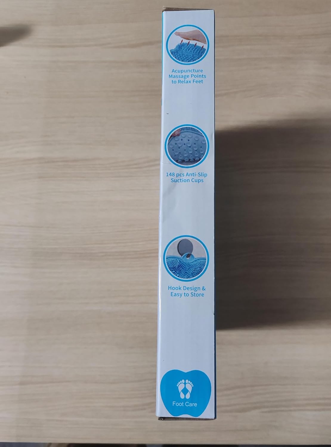 Newly Upgraded Large Size – 11″ * 11″(others only 9.4″ * 10.6″), Fits the size of most people’s feet, big enough for you can stand on it with both feet. The powerful suction cups at the bottom firmly attach to the floor or the vertical wall of the bathtub. It doesn’t take too much room in your bathroom, a convenient hanging hole design to drain and dry between showers.
