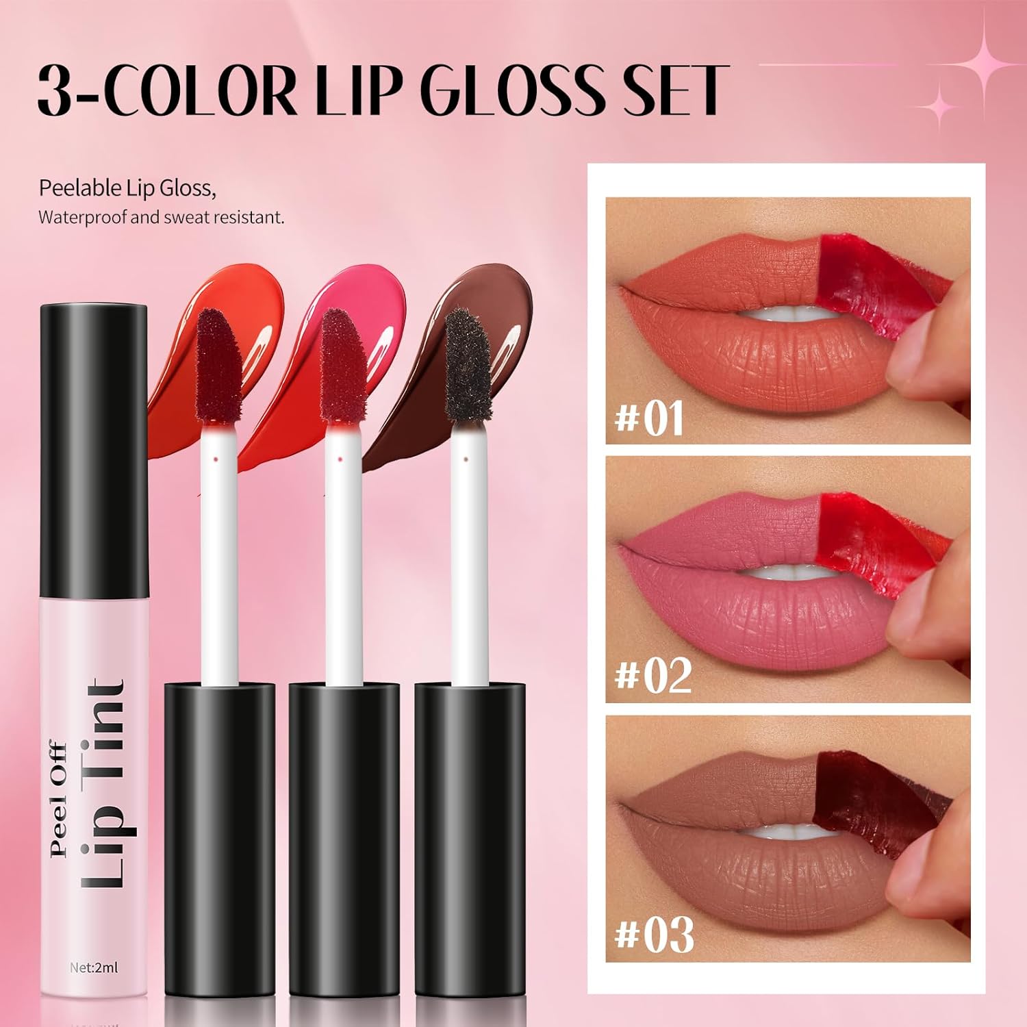 【3 Colors Peel Off Lip Stain Set】This is a new peel off lip stain set with easy application, fast drying and easy peeling. You can choose the colour you want and when you peel it off, you get a naturally and beautiful colour on your lips