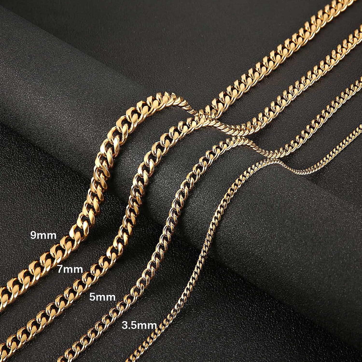 HZMAN Cuban Chain for Men 3.5mm/5mm/7mm/9mm Stainless Steel Men’s Gold Chain Silver Chain Diamond Cut Hip Hop Link Chains Necklace 16-30 Inch
