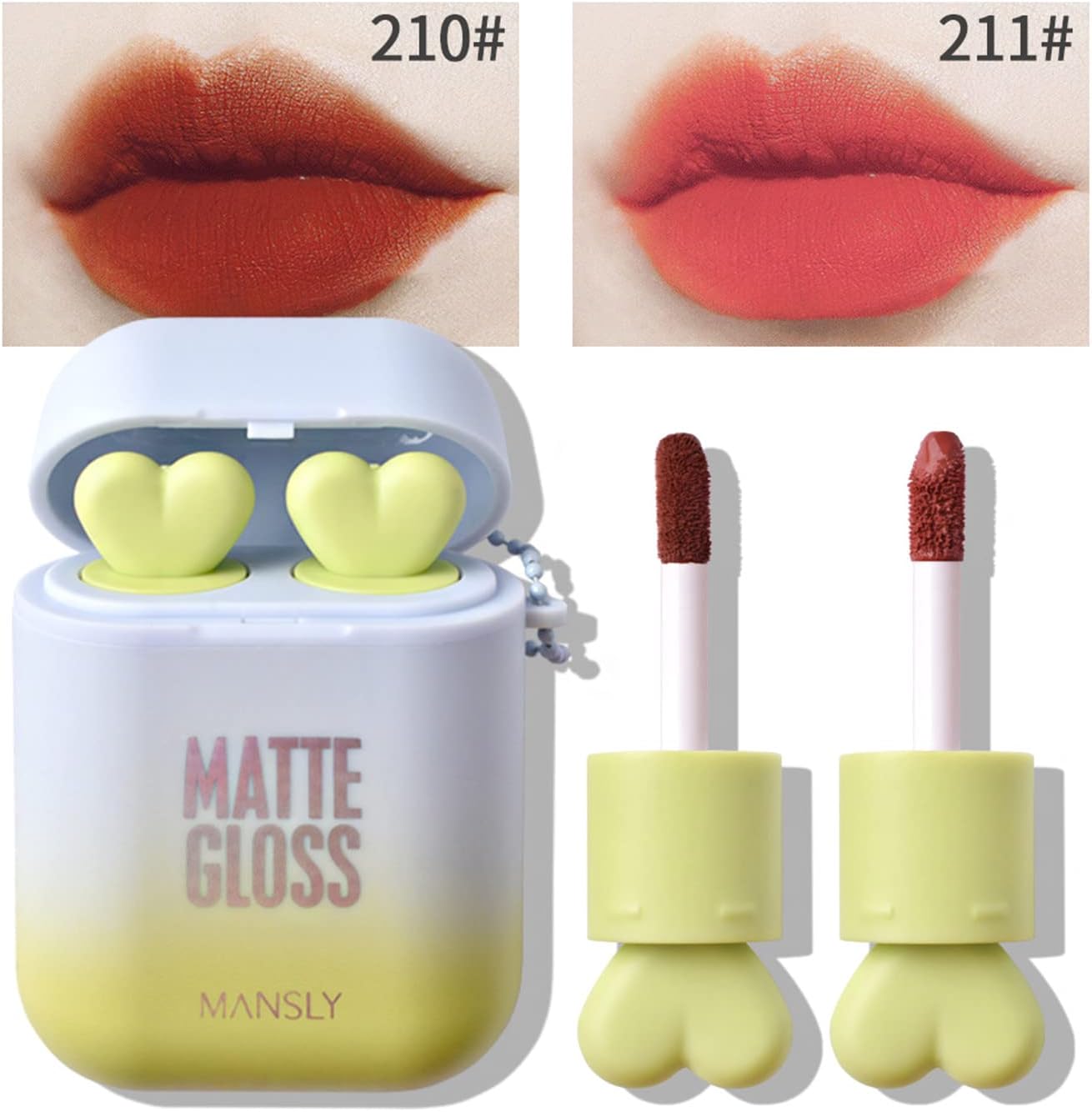 【Unique Appearance】: This matte lipstick set is designed in the shape of a headphone box, a heart-shaped double tube, two colors, delicate and easy to carry.