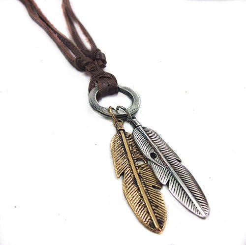 Jirong Soft Leather Feather Necklace Men’s Leather Necklace, Women’s Leather Necklace B1