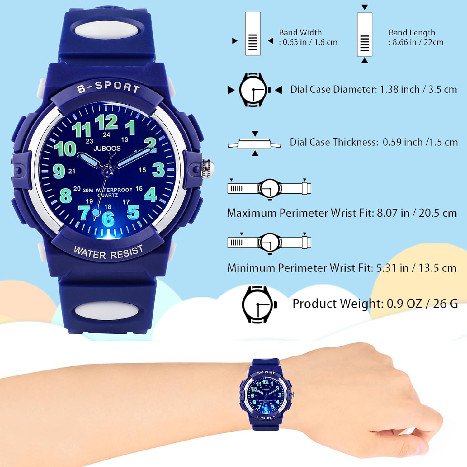 Juboos Kids Watch Analog with 7 Colorful Night Lights Boys Girls Waterproof Soft Strap Kids Time Teaching Quartz Wristwatch for Ages 5-18, Kids Gifts