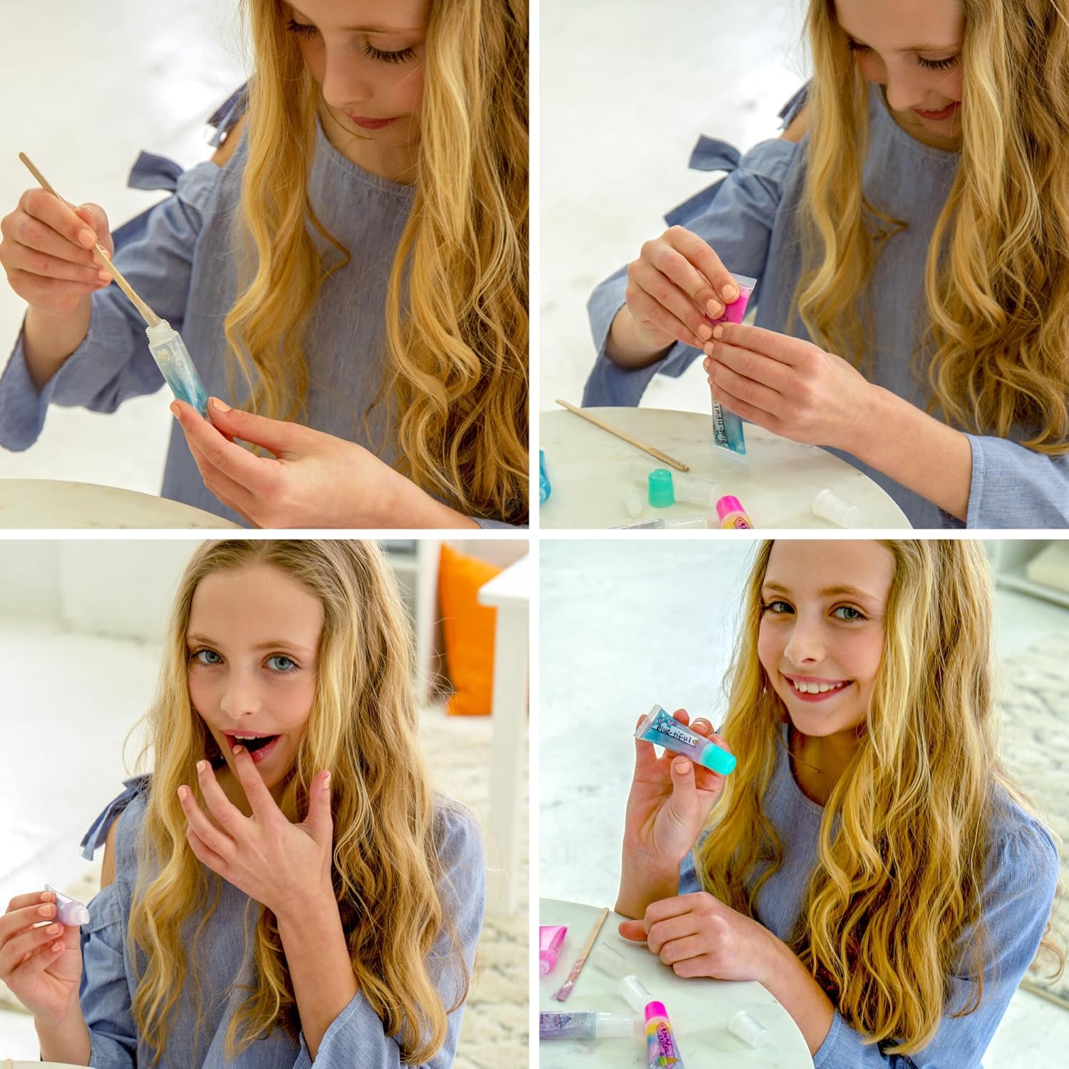 CREATE 4 CUSTOM LIP GLOSSES: Layer tons of fun flavors and colors inside ready-to-customize lip gloss tubes to create your own pocket-sized glosses!