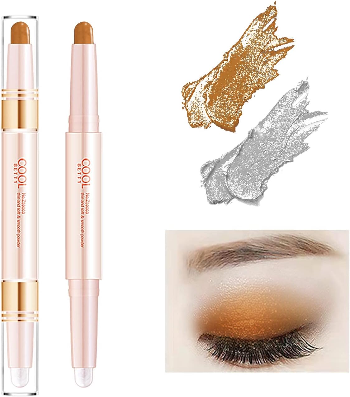 Double Heads Design, Double Colors: The cream eyeshadow stick has double heads, which consist of 2 glitter shimmer tones. The color contains white/gold or white/brown, you can choose the suitable color at different occasions.