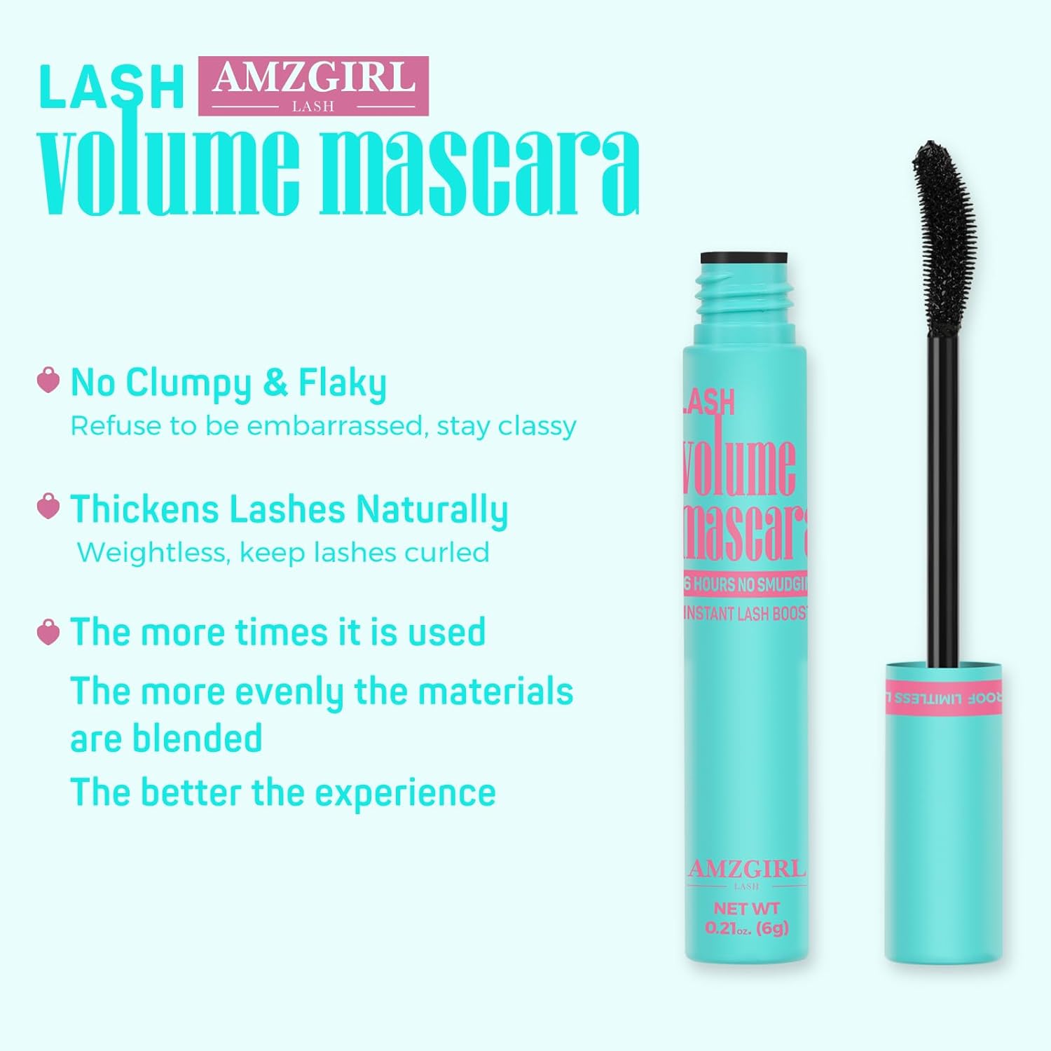 【AMZGlRL Mascara】Create you perfect eye makeup look with our collection of voluminous mascaras.AMZGlRL brush reaches all lashes in just two strokes.AMZGlRL black mascara provides an instant,colour-intensive result.Get the long, full eyelashes you love with our best mascara.