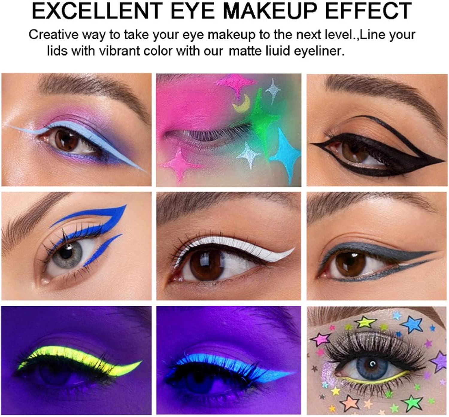 Liquid Eyeliner Set, Joyeee 12Pcs UV Neon Eyeliner Waterproof Coloured Eyeliner Liquid Eye Liner Long Lasting Eyeliner Pen Wedding Party Cosplay Eye Makeup Gifts for Women Girls