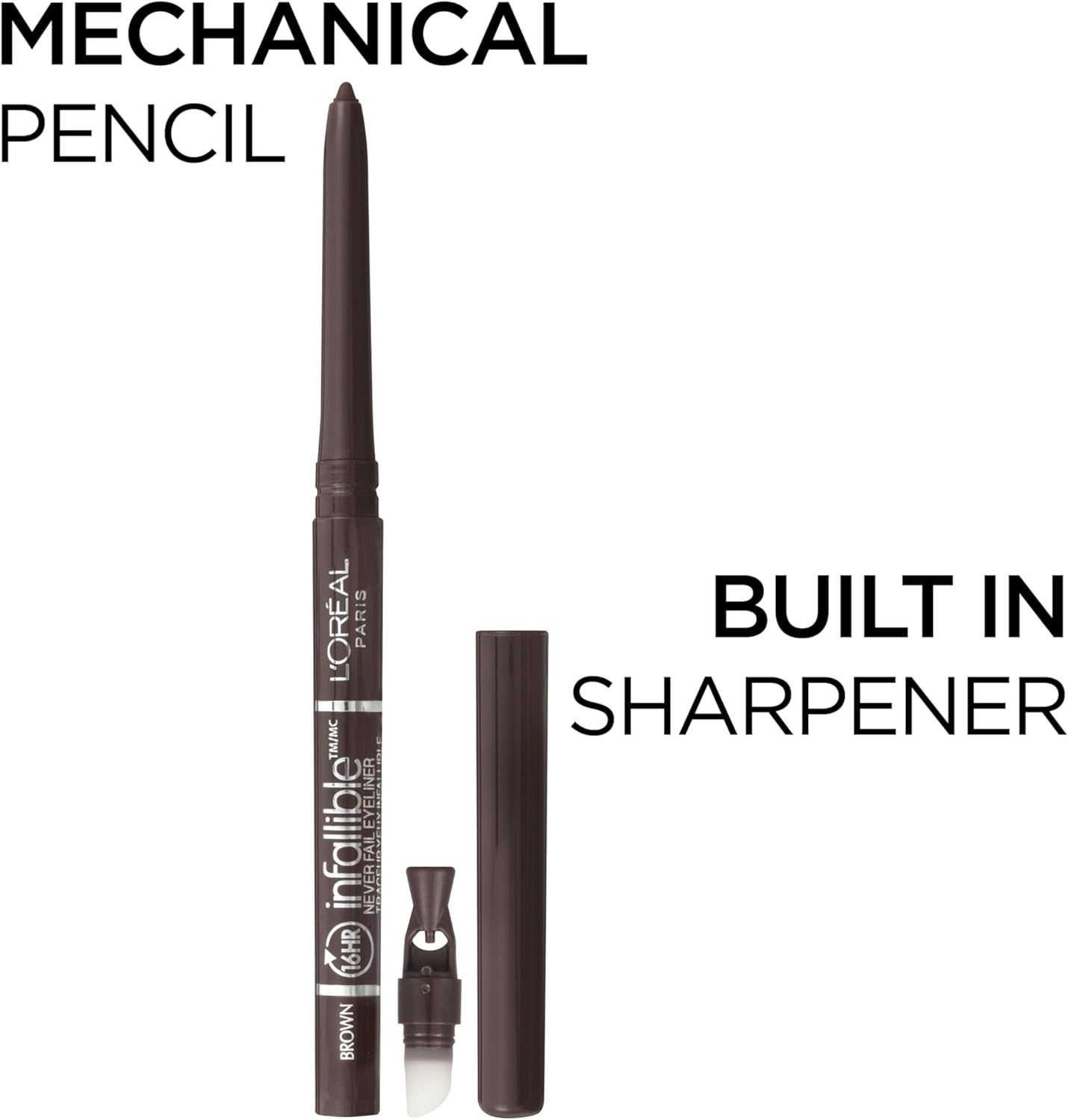 Enjoy beautifully defined eyes for up to 16 hours. Infallible never fail eyeliner is L’Oreal’s most advanced mechanical liner with superior long-wearing technology. The rich and creamy formula glides on easily and evenly and sets quickly for fade-proof.