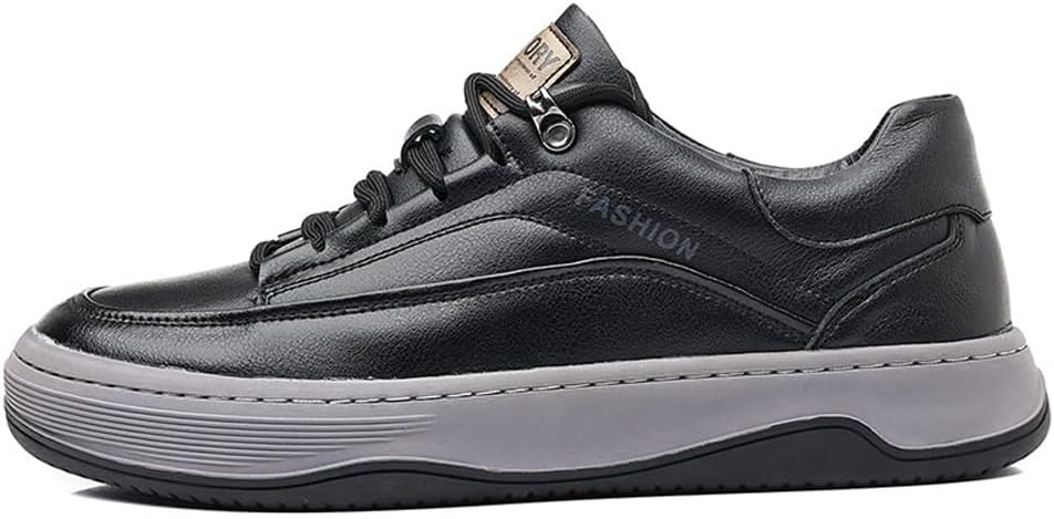Men’s Genuine Leather Breathable Soft Sole Sneakers – Casual Flat Low-Top Thick Sole Athletic Shoes, Black, 10