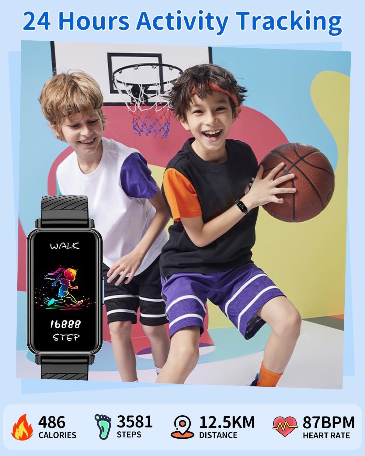 【All-day Activity Tracking】: Supporting multiple sports activity modes, our kids smartwatch will automatically calculate steps, distance, calories and activity time. In addition, you can set exercise goals to encourage your children to exercise.