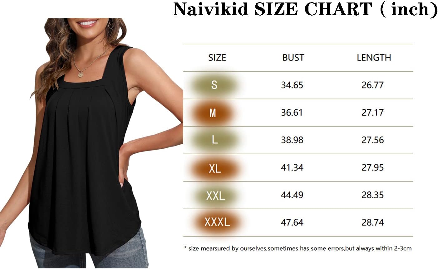 Naivikid Tank Tops for Women Pleated Flowy Summer Sleeveless Tops Casual Square Neck Shirts S-XXXL