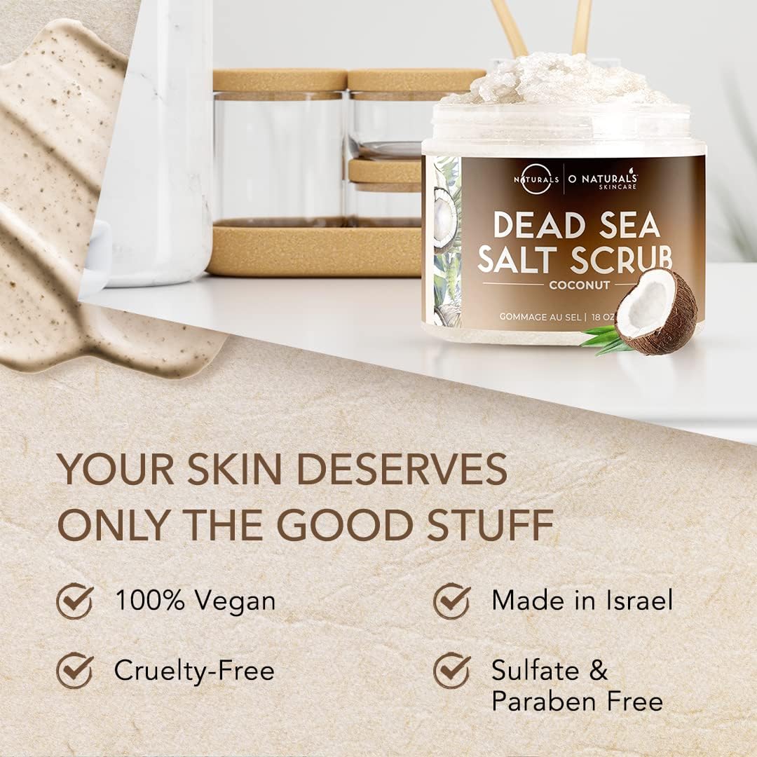 O Naturals Ultra Hydrating Coconut Body Scrub With Dead Sea Salt – Skin Smoothing Exfoliating Scrub, Face Scrub & Foot Scrub – Body Scrub Exfoliator/Body Exfoliator
