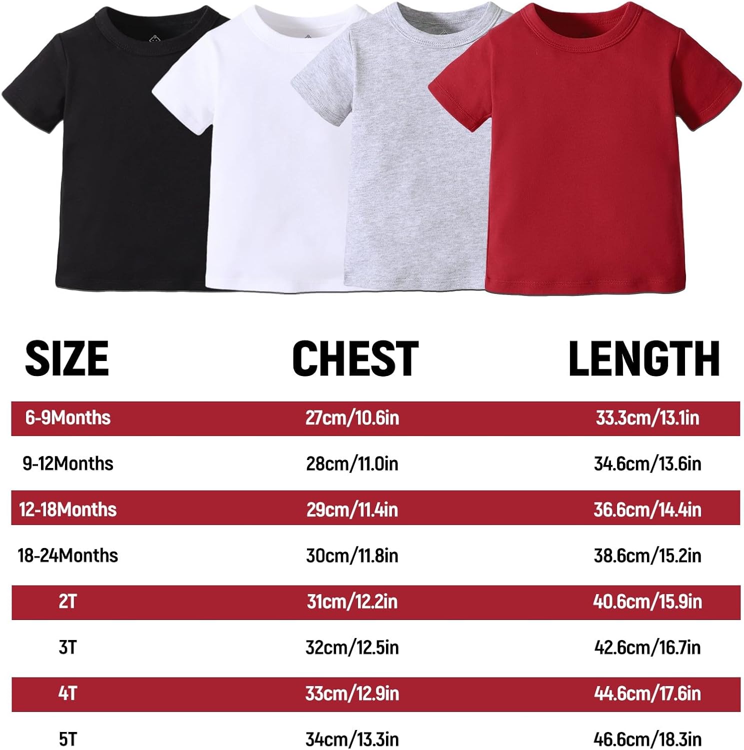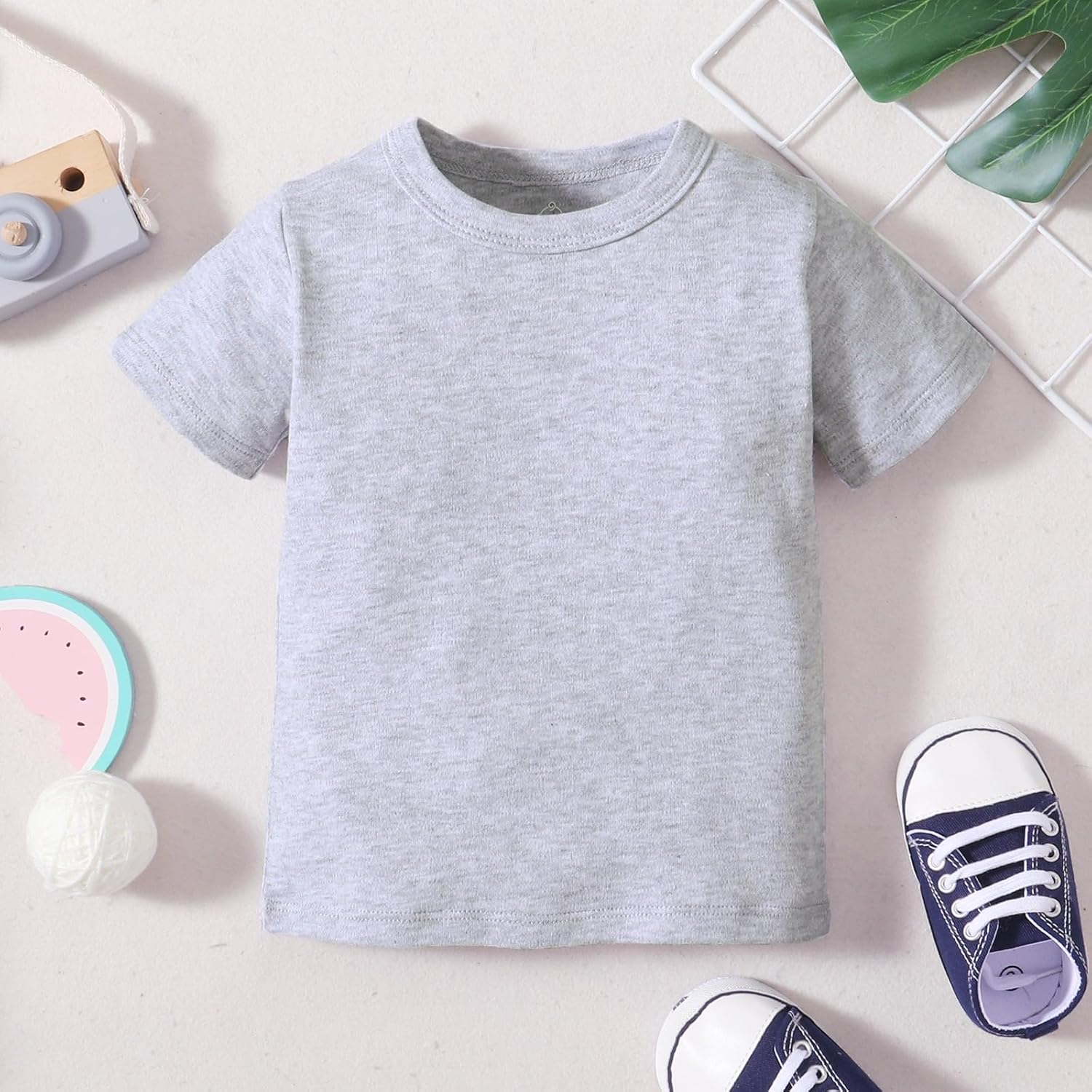 OPAWO Unisex Infant Baby Crew Neck T-Shirt 4 Pack Toddler Short Sleeve Solid Color Tees Shirts for Boys Girls 6 Months-5T