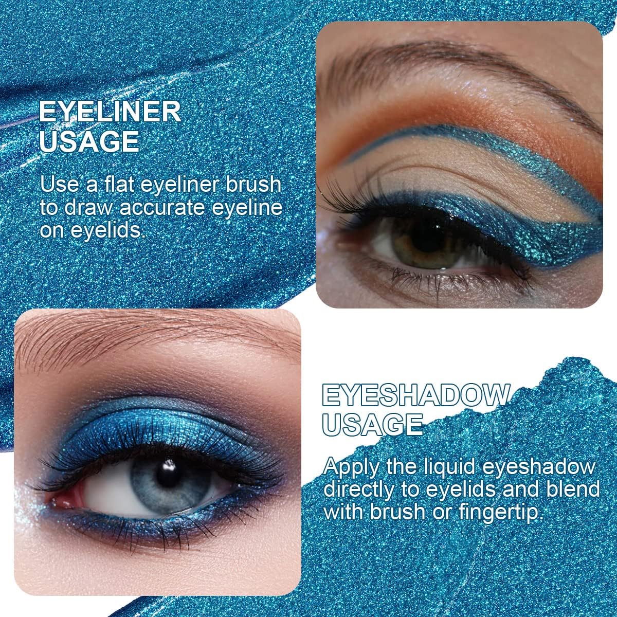 Oulac Liquid Glitter Eyeshadow – Metallic Blue Eyeshadow Sparkly Blue Eyeliner, Liquid Shimmer Eyeshadow & Eyeliner Blendable Eye Make-up, Crease Resistant, Vegan, 5.4g, Ocean Treasure (10)