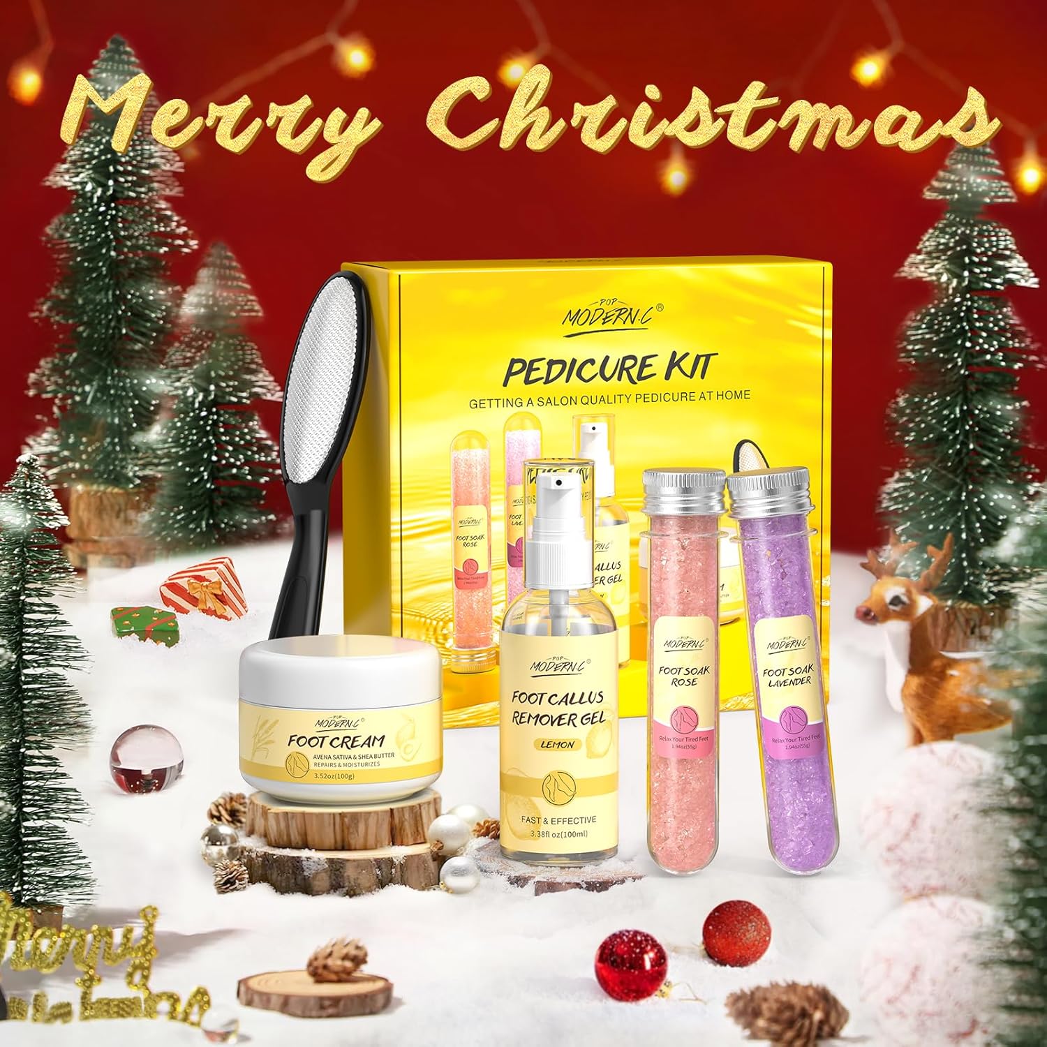 PERFECT SET DESIGN: Carefully selected pedicure set brings you a salon-quality experience. Soak, exfoliate and moisturize your tired feet. Each kit includes 2 pcs of foot soak salt, foot callus remover gel, foot cream and foot rasp.