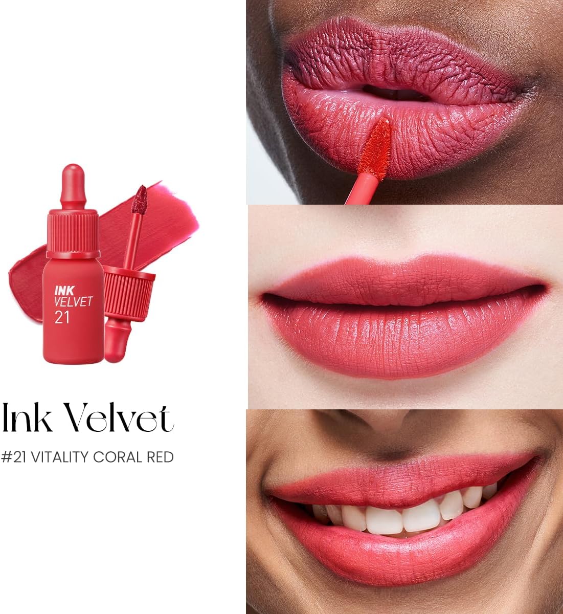 Peripera Ink the Velvet Lip Tint | High Pigment Color, Longwear, Weightless, Not Animal Tested, Gluten-Free, Paraben-Free | 0.14 fl oz (021 VITALITY CORAL RED)