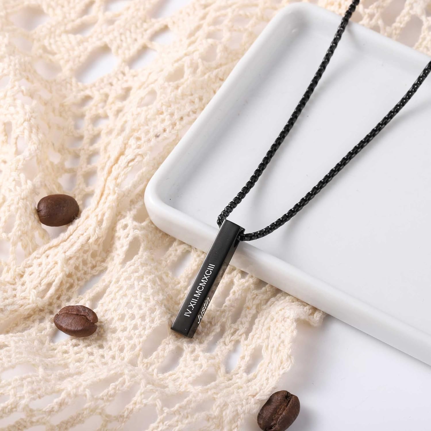Personalized Men Necklace – Custom Chains For Men – Black 3d Bar Name Necklace – Gift For Dad, Husband, Boyfriend