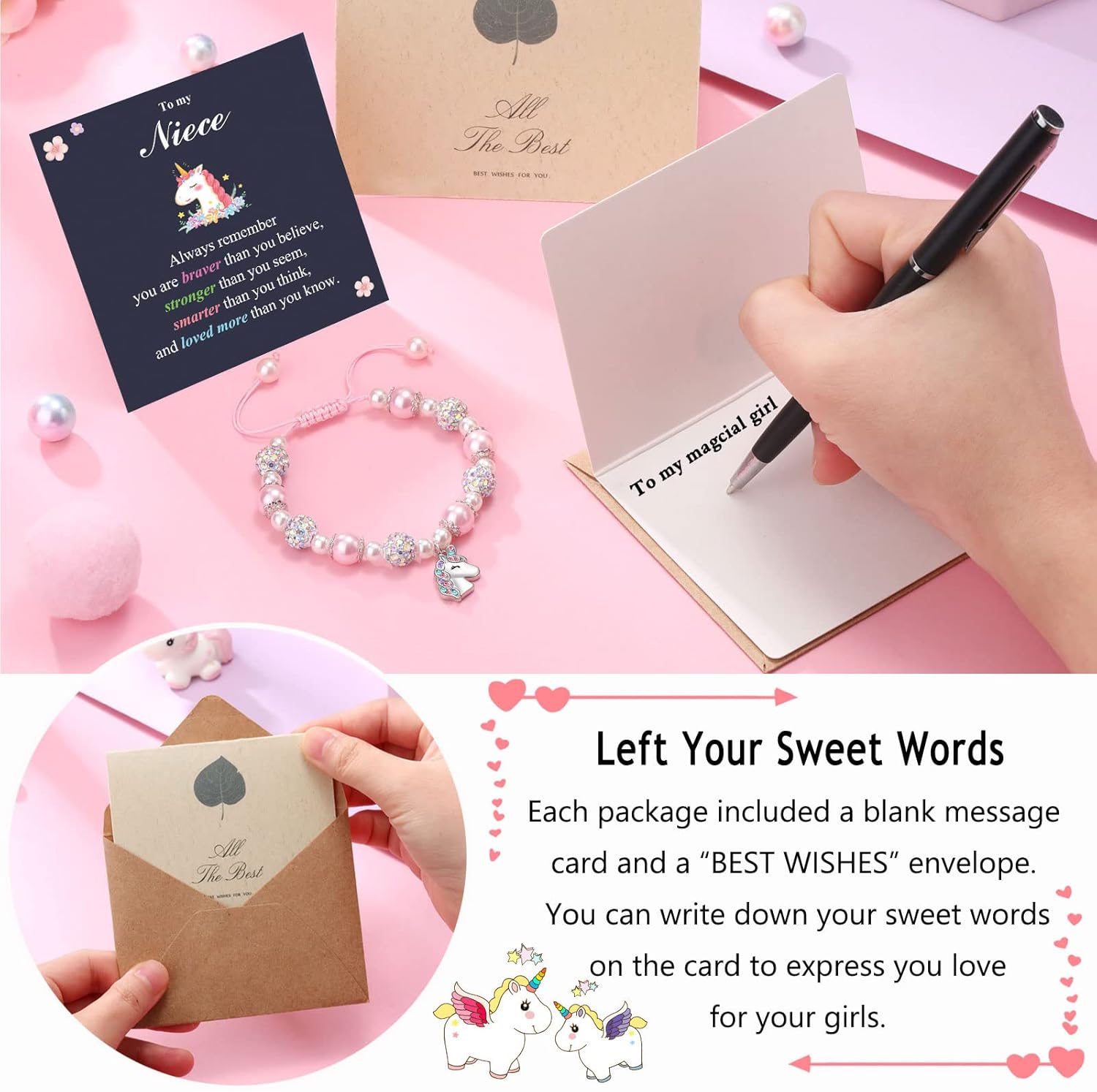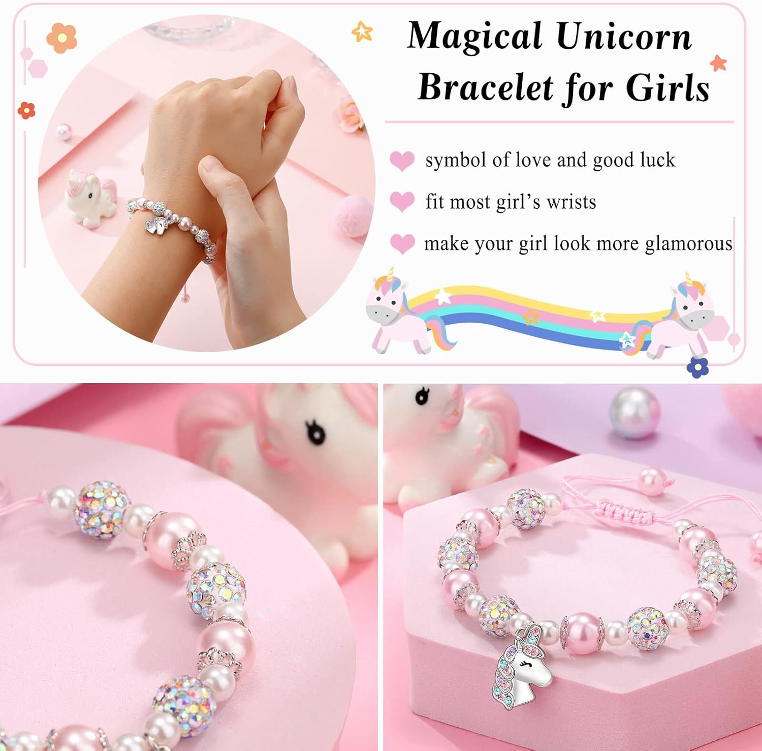 PINKDODO Unicorn Pink Pearl and Rhinestone Bracelet for Daughter/Granddaughter/Niece Unicorn Birthday Christam Gifts for Girl Jewelry