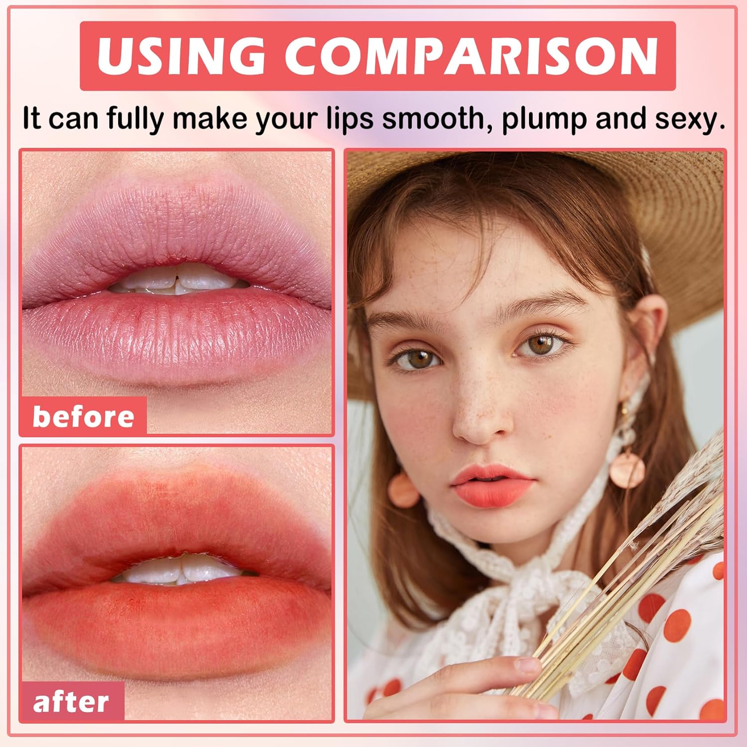 【How to Use】Cleanse and moisturize lips before application,then peel off the lip gloss in two to three thick coats,depending on the desired intensity.Once completely dry,you can use a spray bottle to mist your lips with water,which makes it easier to peel off the film to reveal a ultra-saturated lip color.