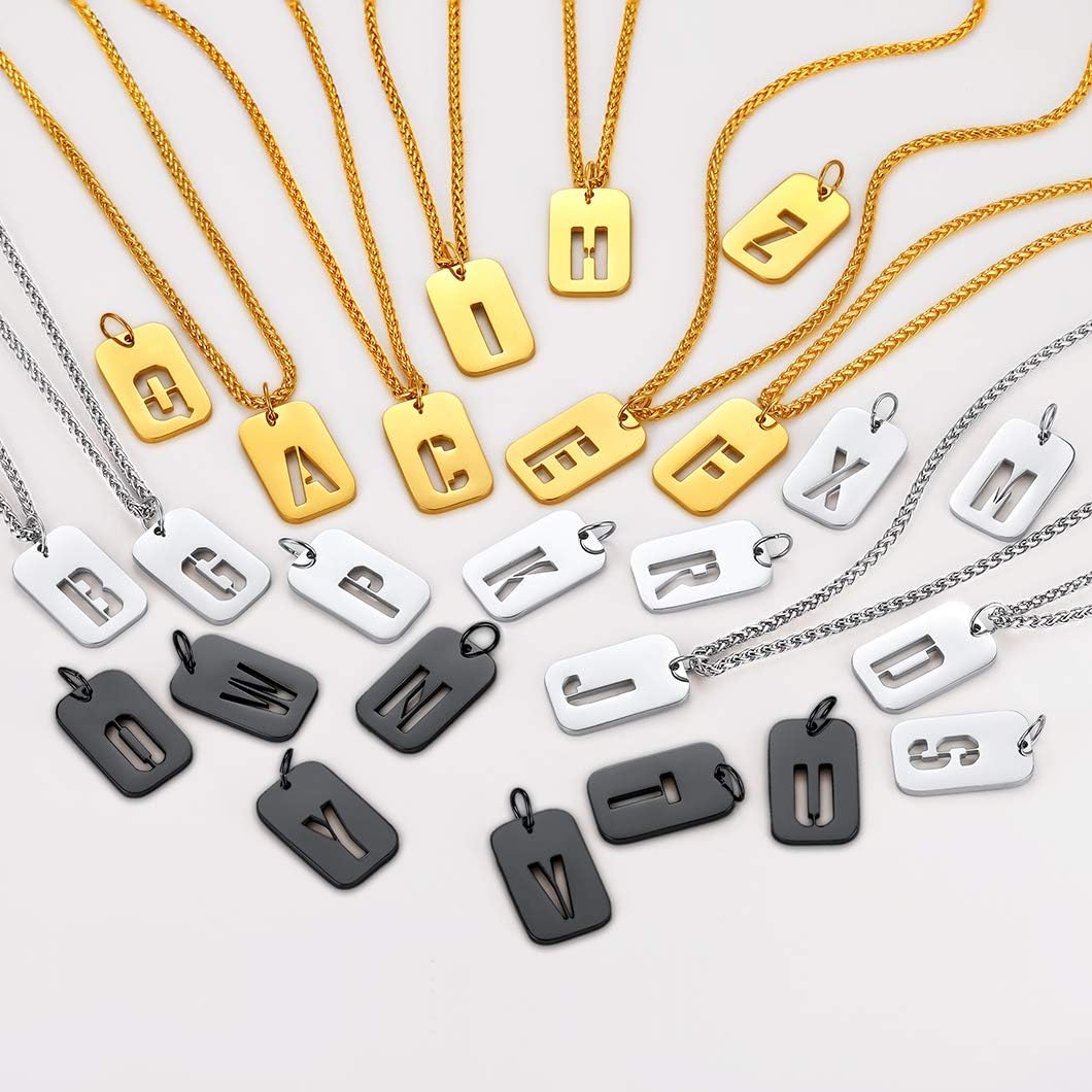 Richsteel Initial Pendant Necklaces for Men Dog Tag Letter Necklace for Women Stainless Steel Military Army Hip Hop Jewelry Gifts for Boyfriends